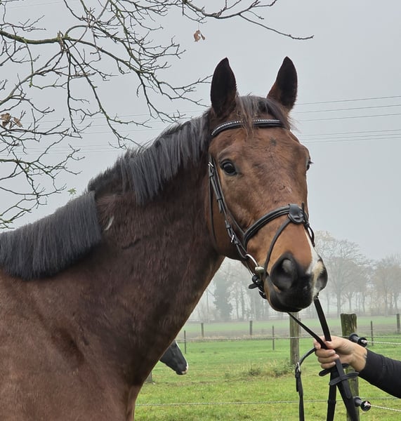 Rusty est un adorable hongre d'environ 1,67 m (16,1 hh), qui devrait encore grandir de 1 à 2 cm. Il possède de bonnes qualités physiques solides, mais ce qui le distingue vraiment, c’est sa finesse de saut. Il fait partie des chevaux automatiques. :-) Rusty est un excellent polyvalent pour toutes les disciplines équestres. Il suffit de lui monter et de se sentir bien. En manège, c’est un cheval vif, un vrai hongre. Il est toujours attentif, aime jouer avec tout et transporter toutes sortes d’objets. :-) Parfois, Rusty est un vrai clown. C’est également un cheval robuste, habitué au paddock, à la pâture 24 heures sur 24, ainsi qu’au box avec accès à la pâture. Rusty a un certificat vétérinaire récent sans aucune anomalie. Pour plus d’informations, n’hésitez pas à nous appeler : 0177/2721831. Si vous souhaitez voir des vidéos, merci de nous contacter exclusivement via WhatsApp.