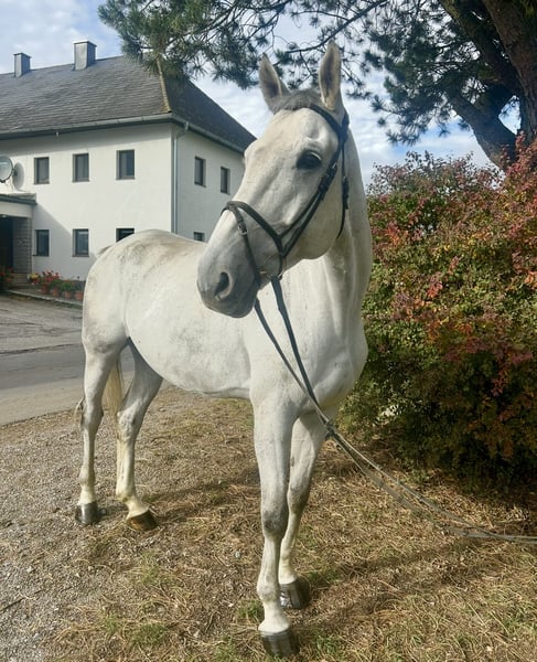 Nino ist ein schöner, großer 2019 geborener Wallach mit hervorragender Abstammung (Nixon van het Meulenhof x Quite Capitol). Dieser ca 182 cm große Apfelschimmel ist sehr gut ausgebildet und dadurch auch für schwächere Reiter gut geeignet. Egal ob in der Dressur oder beim Springen (parcourerfahren), Nino macht beim reiten einfach Spaß. Mit anderen Pferden ist der freundliche Wallach sehr gut verträglich. Dieses Pferd wird sowohl Freizeitreitern als auch Turnierreitern große Freude bereiten! Selbstverständlich ist Nino gesund und frei von jeglichen Unarten. Weitere Infos und Videos gerne per WhatsApp oder telefonisch unter: 00436603632373 Standort: Pelmberg 15/ OÖ Besichtigung und Probereiten gerne nach Terminvereinbarung! Der Transport des Pferdes kann gerne übernommen werden
