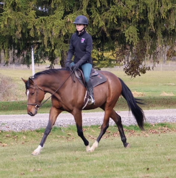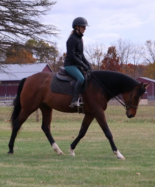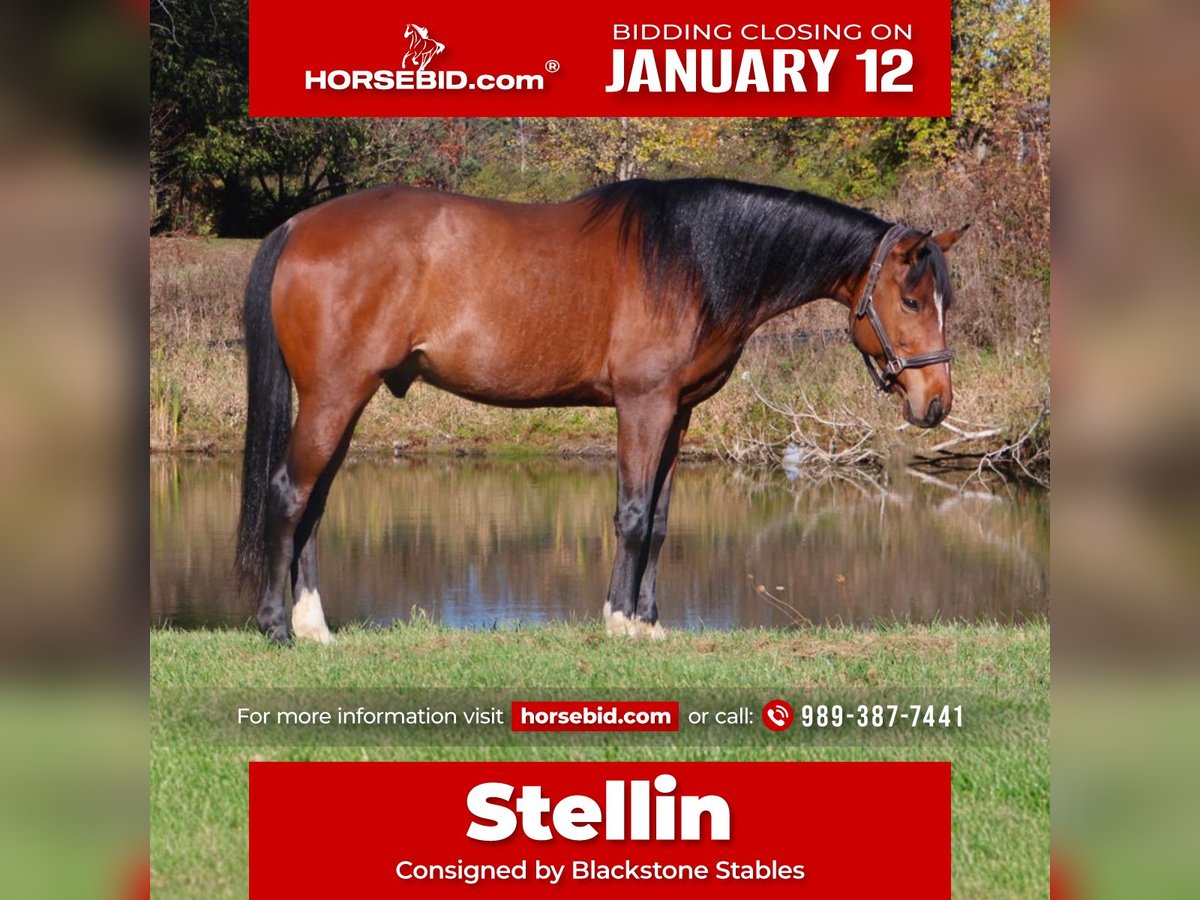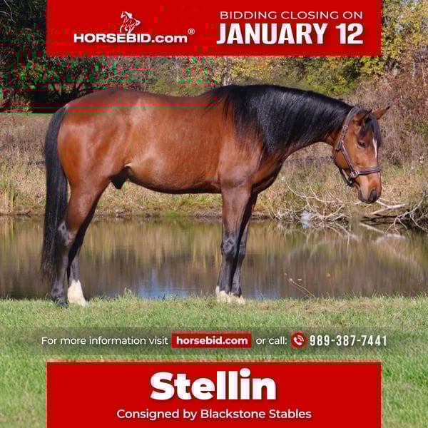 ♦️𝐍𝐄𝐖 𝐘𝐄𝐀𝐑'𝐒 𝑬𝒙𝒕𝒓𝒂𝒗𝒂𝒈𝒂𝒏𝒛𝒂♦️ Happening now thru MONDAY | JANUARY 12th - Available EXCLUSIVELY on HorseBid's website! For more details and to register visit: www.Horsebid.com CONSIGNOR CONTACT: Blackstone Stables 989-387-7441 LOCATION: Howell, MI BREED: American Warmblood REGISTERED: No REGISTERED NAME: Stellin COLOR: Bay HEIGHT: 15.3 AGE: 7 GENDER: Gelding "Stellin" as we call him is a beautiful 7-year-old gelding who is a traditional bay in color with just enough chrome. He is a grade American Warmblood who stands 15.3hh. Stellin is extremely friendly but yet quiet and respectful to be around. He is always the first one to meet you at the gate. Stellin is a pet in the barn and is always happy for attention. He rides english and western. He has three very smooth gaits, a nice walk, the most stunning trot and a quiet canter. He lopes nice circles, takes both leads, and is soft in the bridle. He has amazing suspension in his trot and can collect and extend with ease. Stellin has been on many trail rides and on busy highways. He will ride out by himself or with other riders. He has a very comfortable extended trot making him perfect for a lower level dressage rider. Stellin is safe for all level riders, he enjoys hanging out with kids. If you're looking for a beautiful gelding to take to a dressage show, a trail ride, a working EQ or just have as a friend, then you won't find anything better than Stellin.