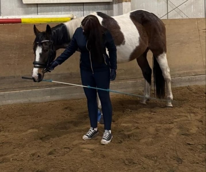 Ich biete hier meinen im Juni 8 Jahre alt werdenden Scheckwallach an. Er ist ein polnisches Warmblut. Er hat eine Größe von ca. 162 und einen Charakter aus Gold. Seine größte Freude hat und bereitet er im Gelände - hier ist er jederzeit händelbar und hat vor nichts Angst. Selbst bei begleitenden Pferden, die im Gelände nervös werden - er behält die Nerven. Er möchte sich alles ansehen und ist total neugierig. Er ist ein kleiner Clown und kuschelt gerne. Dennoch ein Pferd, welches möchte, dass man ihm zuhört und eine ruhige Führung gibt. Mit Druck kommt man bei ihm nicht weit. Wieso ich dieses tolle Pferd abgebe: Nur sehr ungerne trenne ich mich von ihm. Ich selber besitze ihn noch nicht lange, habe ihn aufgrund seines tollen Charakters als Zweitpferd gekauft, um mit ihm tolle Stunden draußen zu verbringen und meinem öfter nervösem Erstpferd einen Ruhepol zu geben. Der Plan ging auch super auf. Kommen wir nun zum "aber". Er hat am vorderen linken Bein eine Fehlstellung. Das Bein ist leicht nach innen gedreht. Mehr als ein "optischer Mangel" war es für mich nicht. Dem Pferd zu Liebe und für meinen inneren Frieden habe ich das Bein vom Tierarzt ansehen und auch Röntgen lassen. Es zeigen sich Randexostosen am Karpalgelenk. Nicht dramatisch, aber eben da. Wir haben das Gelenk mit PAAG behandelt (Polyacrylamid Hydrogel), welches das Gelenk unterstützt. Er hat die Behandlung gut vertragen und die Prognosen sind gut. Wieso er also bei mir ausziehen "soll": Ich würde ihn mit dieser Ausgangslage gerne in einem Stall wissen, in dem er möglichst viel Bewegung hat - Offenstall / Laufstall o.Ä. Diese Haltung kann ich ihm nicht bieten. Dazu kommt, dass meine Reitbeteiligung und ich viel, regelmäßig und lange Strecken im Gelände unterwegs sind und auch dressurliche Ambitionen haben. Um ihn mit diesem Befund nicht zu "überlasten", möchten wir ihn in guten Freizeitreiter Händen wissen. Er wäre ideal geeignet für entspannte Stunden im Gelände, ggf. auch ein Mutter Tochter Gespann, die viel Freude mit dem Pferd haben wollen - er ist toll mit Kindern. Er ist noch jung und soll es guthaben. Er kann inklusive seines frisch für ihn angepassten Dressursattels ausziehen, damit er für sein neues Abenteuer direkt gut gerüstet ist. Der Sattel ist im Preis inklusive. Anfragen mit "letzter Preis" o.Ä. werden nicht beantwortet - hier geht es um ein Lebewesen und nicht um einen Gegenstand. Ich freue mich auf Zuschriften