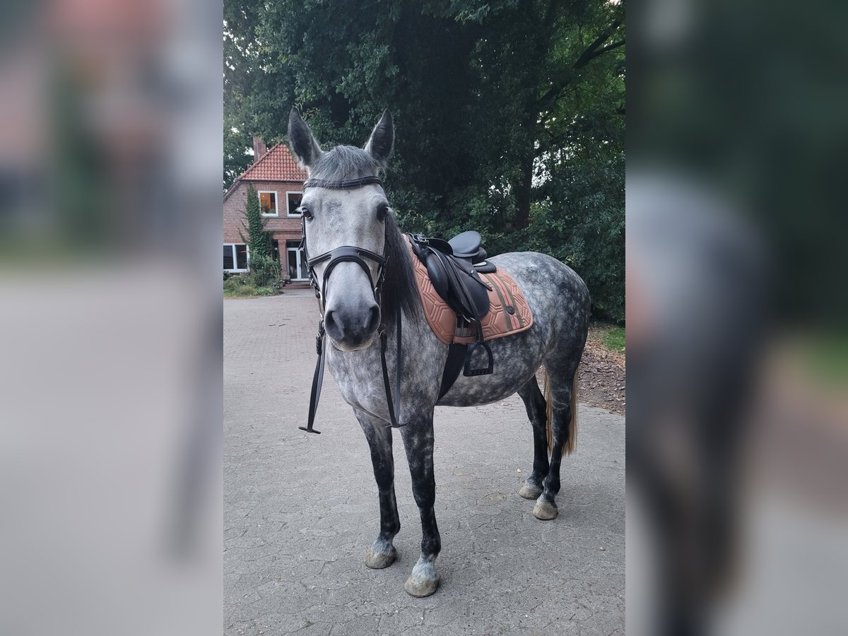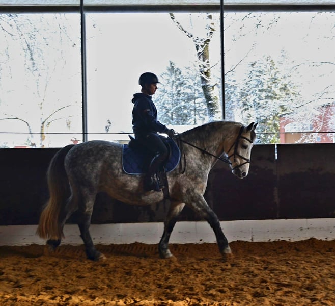 Hallo, Zum Verkauf steht mein lieber Wallach Aragon, geboren 2017, ca. 157 cm groß. Er ist ein ausdrucksstarker Apfelschimmel, der durch seinen tollen Charakter und seine ehrliche Art überzeugt. Trotz seiner Größe deckt er 'auch größere Reiter gut ab'. Aragon ist ein lernwilliges und aufgewecktes Pferd, der seinen eigenen Menschen sucht – jemanden, der mit Ruhe, Geduld und Vertrauen mit ihm arbeitet. Er ist seit etwa einem Jahr solide unter dem Sattel und zeigt sich dabei sehr kooperativ. Sowohl in der Bahn als auch im Gelände ist er brav und unkompliziert unterwegs. Freispringe7n findet er super und macht das mit Freude mit – auch unter dem Reiter hat er bereits erste Sprungerfahrungen gesammelt und zeigt dabei eine gute Übersicht und Motivation. Er wäre am liebsten immer bei allem dabei und ist einfach nur Liebenswert. Ein artgerechtes Zuhause ist mir sehr wichtig – ideal wäre Offenstallhaltung oder ein vergleichbares Haltungsmodell mit viel Sozialkontakt. Keine reine Boxenhaltung. Aragon ist regelmäßig beim Zahnarzt und beim Hufschmied. Anhänger fahren ist noch nicht seine Leidenschaft aber wir arbeiten stehts dran. Geht nicht an Händler!!