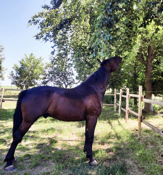 Wunderschöner Warmblut Wallach aus 2017 zu verkaufen. Er ist ca 1,60 / 1,65 m gross und kräftig gebaut. Daher deckt er sehr gut ab. Aktuell ist er wetterbedingt nicht richtig im Training, kann aber Probe geritten werden. Ausgebildet ist er englisch. Sehr angenehm zu sitzen. Kleine Sprünge hat er bereits gemacht. Wenn er keine Lust hat, ist er triebig und braucht daher eine klare aber auch ruhige Hand. Daher würden wir ihn nicht für Anfänger geeignet sehen. Man sollte sich durchsetzen können. Wenn man sein Vertrauen einmal hat, dann ist er ein wahrer Schatz. Er testet altersentsprechen noch etwas wo seine Grenzen sind. Gestiegen ist er dabei NIE. Buckeln gehört auch NICHT zu seinen Favoriten. Er bevorzugt dann eher das stehen bleiben. Wir würden ihn als geländesicher und treuen Begleiter beschreiben, wenn man sein Vertrauen hat. Dann geht er mit einem durch dick und dünn. In Alltagssituationen wurde er bei uns frech, wenn er etwas nicht wollte. (Treten, versucht zu zwicken) Dies kannte die Vorbesitzerin jedoch nicht. Die Vorbesitzerin konnte und kann alles mit ihm machen. Schwimmen, Gelände, Platzarbeit. Bei uns ist er jedoch nie richtig angekommen. Deshalb sind wir den Weg gegangen, dass er momentan wieder bei der Vorbesitzerin steht. Dort fühlt er sich sehr wohl und ist direkt wieder der Alte. Sie kann ihn aber nicht weiter betreuen, daher steht er nun zum Verkauf. Gesundheitlich ist er sehr gut durchgecheckt worden. Magenspiegelung (wir wollten sicher stellen, dass sein Stehen bleiben nicht mit seinem Magen zusammen hängt), Gangbild kontrolliert, AKU, Rücken wurde geröngt (unauffällig) sowie Blutbild. Alle Untersuchungen waren unauffällig. Wir wünschen uns für ihn ein Zuhause, wo er nicht zu einem Wanderpokal wird. Daher wird er hier auch deutlich günstiger angeboten als er zuvor gekauft wurde. Er benötigt einfach eine selbstbewusste Führung. Bei dem letzten Probereiten hat die Chemie gepasst und er war auch im Gelände und bei der Platzarbeit sehr lieb. Leider mussten die Interessenten absagen, da sich Stalltechnisch etwas verändert hatte. Bei Interesse können gerne Videos usw geschickt werden. Er kann eine AKU vorweisen (nicht ganz aktuell), Schmiede und verladefromm. Wenn er Interesse geweckt hat, dann gerne melden. Fragen beantworten wir sehr gerne. Uns ist es sehr wichtig, dass er ein schönes Zuhause bekommt. Probereiten (auch mehrfach wäre möglich). Wahrscheinlich auch mit Zubehör abzugeben.