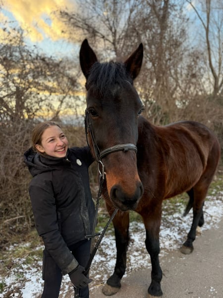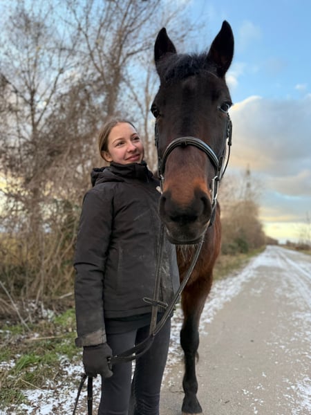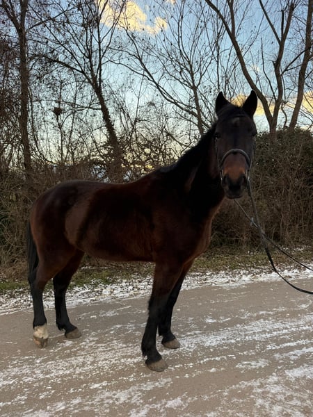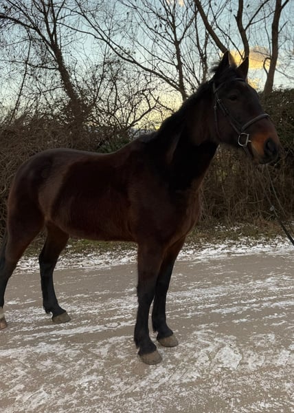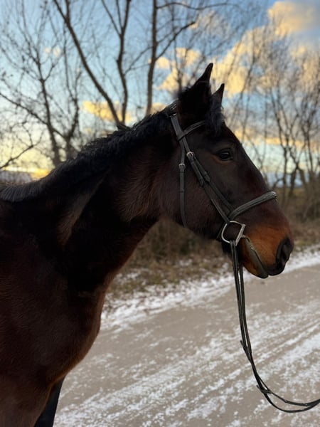 For sale is the 2017-born German Standardbred gelding “Star Force One,” approximately 1.64 meters tall. This young horse impresses primarily with his friendly nature. He is very well-behaved in handling, not spooky, and also makes a great leisure partner under saddle! He is calm and steady in all three gaits but has mainly been ridden in the field, so he still finds cantering in the arena a bit challenging under saddle. However, he shows increasing confidence and a quick learning ability with each riding session. He has no vices (does not buck or rear) and is looking for a nice companion who enjoys hacking out and light work in the arena. He is very compatible in a group, is familiar with the farrier (currently barefoot), veterinarian, and loading and traveling. A wonderful new home is sought where he can enjoy his usual turnout all day long. The sale includes tack and accessories (bridle, boots, fitted Prestige saddle, etc.).
