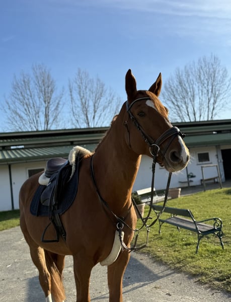 Sales advertisement: Beautiful Warmblood gelding for sale We are offering our talented Warmblood gelding for sale. Features: - Breed: Warmblood - Gender: Gelding - Year of Birth: 2017 - Color: Chestnut - Height: approx. 170 cm - Discipline: Dressage This charming gelding impresses not only with his appealing color but also with his excellent temperament and willingness to learn. He is well-mannered and shows great potential in dressage. He is suitable for both experienced riders and ambitious beginners who wish to enter the world of dressage and can already ride with a lot of sensitivity. Fipsi is sired by DON FURST*CANTO and has a very sensitive nature. He was gently backed a year ago and is always motivated. However, he requires a somewhat experienced rider when being ridden. Fipsi goes great on trails and is farrier/load friendly. If interested, please feel free to contact us. Location: 8283 Bad Blumau We look forward to your inquiry!