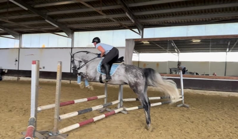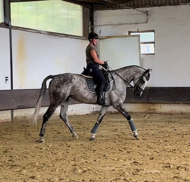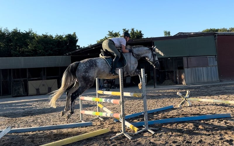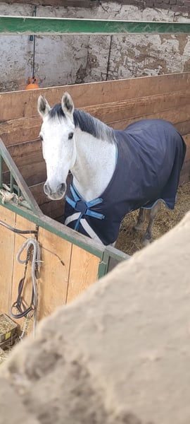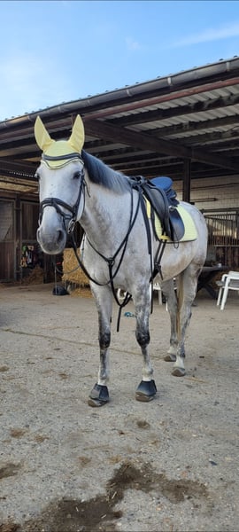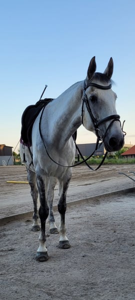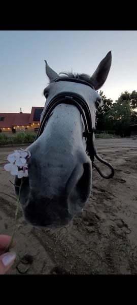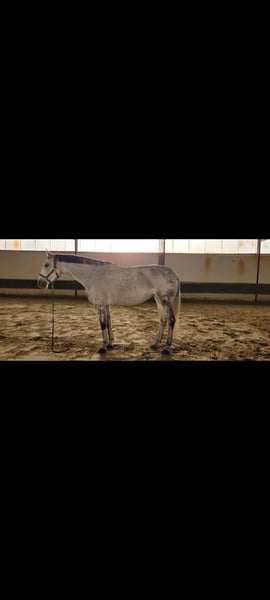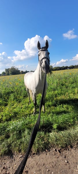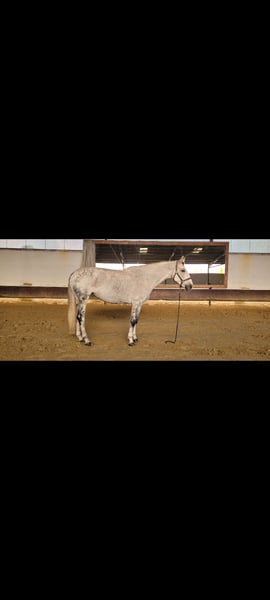Ich verkaufe meine Stute. - 172cm Stockmaß - Warmblut - 12.03.2012 Geboren (13 Jahre alt) - Apfelschimmel wird Fliegenschimmel - Ist vorne beschlagen - Ist geschoren und zur Zeit eingedeckt - ist regelmäßig geimpft und entwurmt - Ist sehr brav beim Schmied und Tierarzt - wurde schon lange nicht mehr verladen aber sollte auch kein Problem sein - sie kennt Führanlagen - wurde regelmäßig beim Zahnarzt vorgestellt - geht lieber in der Gruppe ins Gelände als alleine - Sie wird derzeitig in Boxenhaltung gehalten und stand in der Weidensasion mit 8 Stuten auf einer Wiese Sie liebt es geritten zu werden und ist gut ausgebildet. Sie wurde immer fein und gesunderhaltend geritten, zwischenzeitlich wurde sie gesprungen und hat daran auch viel Freude gehabt. Ich habe zusätzlich viel Bodenarbeit mit ihr gemacht (Langzügelarbeit, Horsemanship, Doppellonge, Handarbeit... kennt sie alles). Kommt gerne Probereiten und macht euch selber ein Eindruck. Ich bin zeitlich flexibel und beantworte gerne persönlich und telefonisch alle Fragen. Um Reittourismus zu unterbinden kostet das Probereiten 25€. Um sie kennenzulernen kann sie auf dem Platz und der Halle geritten werden. Zusätzlich gibt es eine Longierhalle. Ich gebe sie ab, da ich ihr zeitlich nicht mehr gerecht werde. Ich könnte mir gut vorstellen, dass sie auch in einer Reitschule oder als Voltigierpferd passen könnte. Sie hat zwei Schimmel Sarkoide aber damit habe ich sie schon gekauft und diese sind am Bein, wo sie nicht stören. Zubehör kann gegen Aufpreis dazu erworben werden.