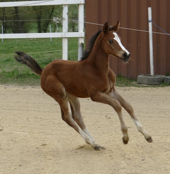Heute möchte ich euch Calea A vorstellen, ein typvolles, großes Stutfohlen. Ihr Name bedeutet "das Glück, voller Freude". Sie stammt von Cadiz (Cordess-Clinton x Heartbreaker x Shakespeare x Potsdam NRW) x Ismo (Ilasso x First Gotthard x Zeus) x Capilano (Capitol x Landgraf). Ein sportlicher Hingucker für Vielseitigkeit und Springsport.