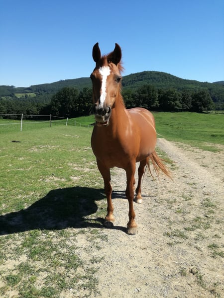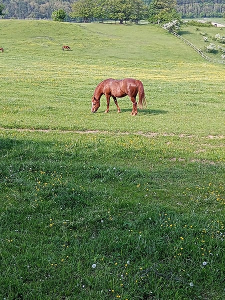 Honeymoon („Honey“) – liebevolle 27-jährige Westernstute sucht Platz mit Zeit & Herz Honeymoon ist eine 27-jährige Stute, die sich über mehr Aufmerksamkeit und Beschäftigung freuen würde. Sie wird westerngeritten (WRC-Niveau), liebt Bodenarbeit und Trail und ist sehr menschenbezogen. Aufgrund ihres Alters sollte auf softe, altersgerechte Belastung geachtet werden – bei entsprechender Rücksichtnahme ist sie aber weiterhin gut reitbar. Früher waren wir viel ausreiten und haben regelmäßig Bodenarbeit gemacht. Leider fehlt mir seit längerem die Zeit, ihr das in dem Umfang zu bieten, den sie verdient und der ihr gesundheitlich gut tun würde. Deshalb wünsche ich mir für Honey einen Menschen, der sich nicht mehr komplett verausgaben möchte, aber dennoch ausreichend Zeit und Freude an einer vielseitigen, liebevollen Beschäftigung mit einem lieben Pferd hat. Erfahrene Pferdemenschen gewünscht, da Honey in neuen Situationen unsicher ist und jemandem an ihrer Seite braucht der ihr Ruhe und Sicherheit vermittelt. Ich habe Honey seit über 15 Jahre und wünsche mir das Beste für sie! Pflege & Haltung: pflegeleicht steht im Offenstall Gesundheit & Fütterung: Honey hat EMS bei rationierter Fütterung keinerlei Beschwerden seit über einem Jahr keine Weide, seitdem gesundheitlich stabil Hufe: vorne beschlagen Sonstiges: In der Herde ist Honey eher ranghoch Platz geht vor Preis komplettes Zubehör wird mitgegeben: Sattel, Zaumzeug, Bodenarbeitsmaterial, Decken u.v.m. Wenn du mehr über Honey erfahren möchtest oder dir vorstellen kannst, ihr ein liebevolles Zuhause zu geben, melde dich gerne bei mir.