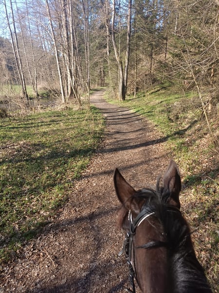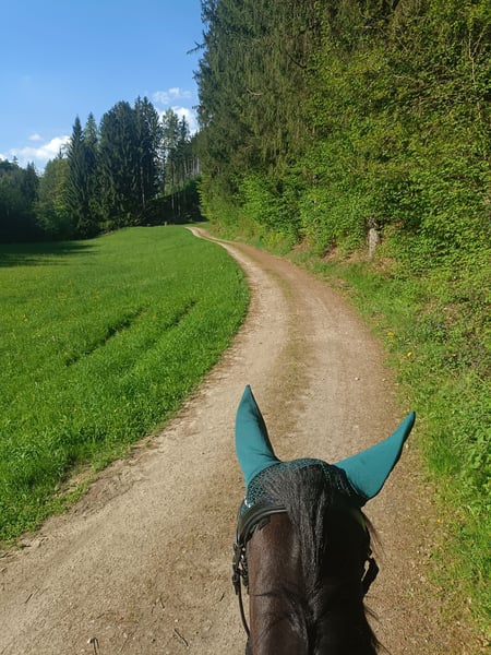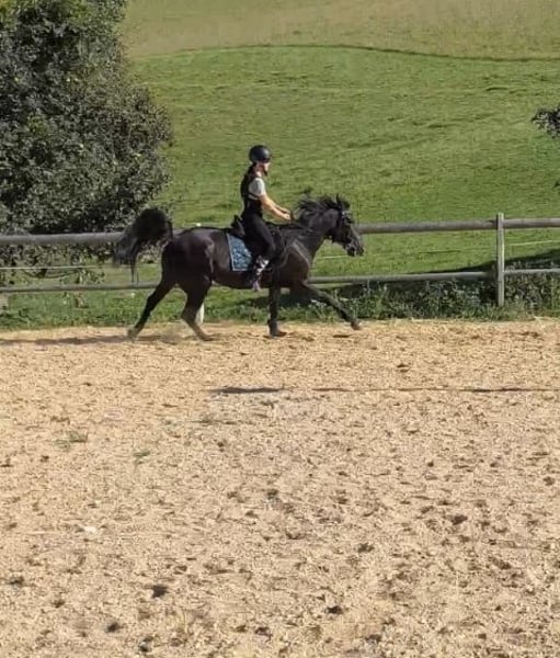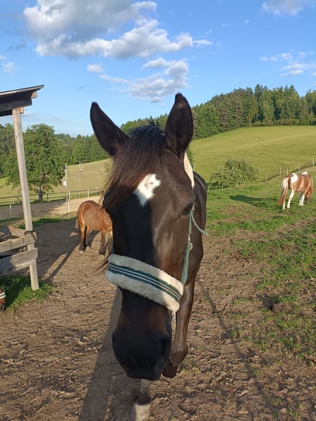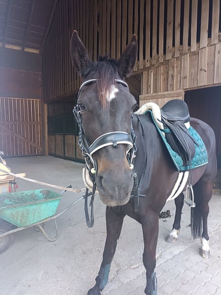 Name: Romy Age: 5 years Height: approximately 15.5–16.0 hh Gender: Mare Romy is a beautiful, sensitive mare with a lot of heart and presence. She needs some time to settle into new situations and with new people, but once she feels secure, she shows herself to be very refined, attentive, and cooperative. She is well-behaved in handling, accepting grooming, leading, and loading. Under saddle, she brings energy and eagerness to learn, but requires an experienced, consistent rider who can provide her with confidence. Romy is not suitable for beginners, but for someone who enjoys training young horses, she will be a wonderful partner. Current Training Level Due to an injury on my part, I had to take a longer break, which resulted in some muscle loss. Therefore, she is currently not at her full potential. Under saddle, she is familiar with walk, trot, and canter (see video, where my younger sister rides her for the first time🙈). Because of her muscle deficit and balance, she may occasionally fall back into a trot. With regular training, she steadily improves, gaining strength and endurance. She can be a bit excitable, but with patience and transitions, her pace can be well controlled. She is absolutely safe in the terrain, very brave and curious. She can go out alone or in a group once she trusts her rider. She has never been particularly spooky or easily frightened with me. What Romy has to offer: - Young, healthy, and eager to learn - Sensitive and people-oriented – forms a close bond with trust - Loadable and transportable - Knows basic gaits, canter is her weaker gait, but she develops steadily - Barefoot, farrier-friendly, regularly vaccinated and dewormed, teeth regularly checked What I am looking for in a new owner for Romy: An experienced, caring leisure rider with patience and joy in working with young horses. Ideally, someone who enjoys groundwork, basic dressage, and hacking, and can give Romy the time to reach her full potential. I can also imagine her jumping, although she has only been introduced to small jumps (cavaletti) with me so far. A trial ride or a visit to get to know her can be arranged. Strictly, priority is given to the rider, not the price. Some of the tack and accessories can be purchased additionally for an extra fee. 📍 Location: District Perg 📞 Contact: +43 660 8254954