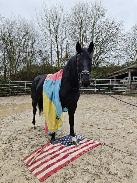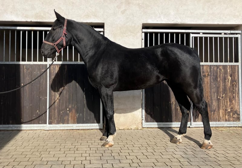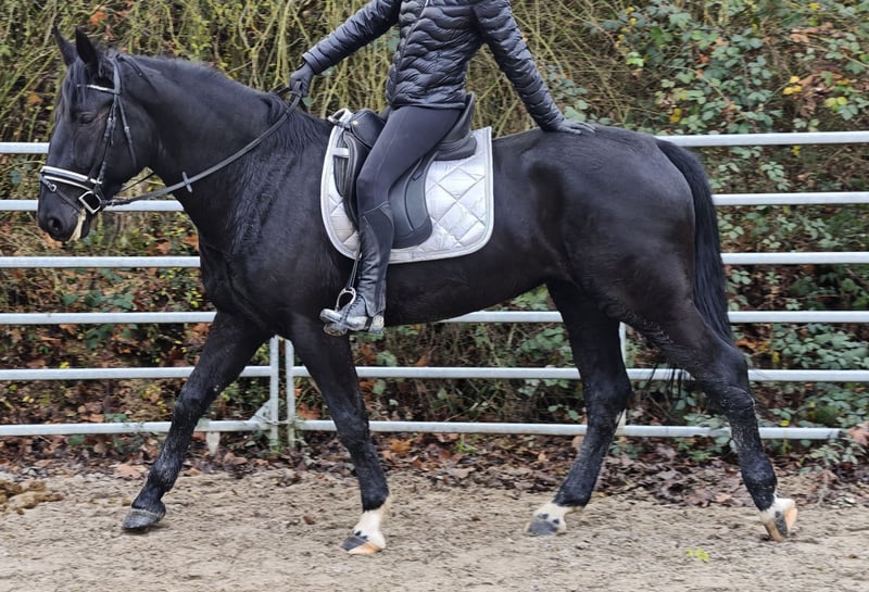 New Price for Quick Decision Makers before Christmas!!! I am offering a very stylish Warmblood mare... For sale is a beautiful black mare, born in 2021, with a height of 16.2 hh. She has papers, is healthy and robust, and is ideally suited for leisure riding. Fine is friendly and easy to handle; she was backed late and gently this spring. She is well-behaved on the ground and obedient under saddle. She has a pleasant temperament and works willingly and enthusiastically! She also has great potential to be further trained in dressage. At her previous home, she was occasionally tense but has been ridden and handled regularly. A pre-purchase exam can be arranged on-site by the buyer. We can also organize transportation to her new home. If interested, I am happy to provide more information; please contact me by phone only at 0173-6677266. Videos can be sent after an initial phone contact and only for serious inquiries!!!
