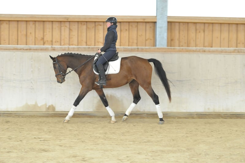 Gundi ist eine elegante, sehr rittige Caraoki Nachkommenstute mit Doppeltalent ausgestattet. Sehr angenehm zum Sitzen, einfach durchs Genick, mit super Einstellung. Tolle Ausbildungsstute für alle Sparten, für Dressur, Halle und Gelände. Eine Empfehlung für nicht ganz so große Reiter.