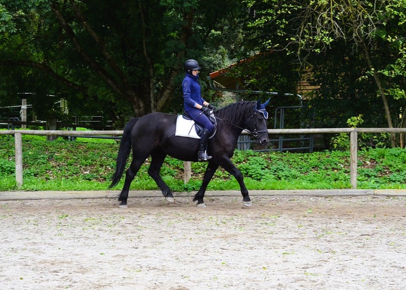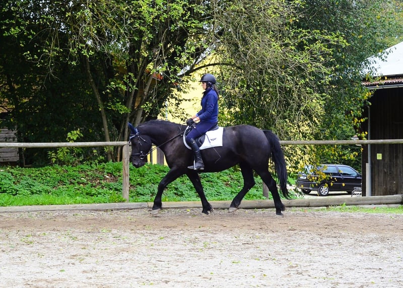 Diese schöne herzensgute Rappstute mit dunkler Jacke überzeugt mit ehrlichem Charakter und 3 guten GGA. Vermittelt ein sicheres Reitgefühl und ist dabei liebenswert und mit toller Einstellung. Ariane kennt Halle, Platz und Geländeausritte alleine oder zu mehreren. Auch eventuell Empfehlung als Voltigier Pferd.