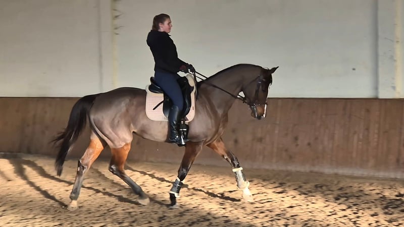 Attractive and promising 7-year-old warmblood mare with excellent pedigree. Sired by Conthargos, with Ruffian Reef xx on the dam’s side, offering a strong combination of performance and blood. This mare has a wonderful temperament—kind, willing, and easy in all handling. She is straightforward to ride, transport, and shoe, making her suitable for both amateurs and more experienced riders. Currently in professional training in Riga, Latvia. She is confidently schooling at 110 cm in show jumping and working at an easy–medium level in dressage. With her scope, attitude, and rideability, she also shows great potential for eventing. She had a foal in 2023, which is reflected in her current training stage, but she is progressing well and continues to improve. A lovely, versatile mare with a bright future in sport. Lots of videos available.