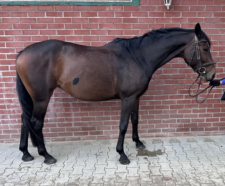 For sale is my mare Lou (7 years old). She was gently started under saddle at the age of 4 and had longer breaks due to the previous owner's pregnancy. For the past six months, she has been in professional training, has a solid basic education, and shows herself to be very eager to learn, hardworking, and willing to perform. We have now started jumping, and she impresses across the board in this area as well – also interesting for eventing! Franziskus is the top dressage horse of Ingrid Klimke: https://hengststation-holkenbrink.de/produkt/franziskus-frh/ Lou is sensitive, typically mare-like, needs a clear, loving hand, and is therefore not suitable for beginners – unless with regular professional support. Highlights: - Top pedigree: Franziskus x Quinto - Solid basic training – fresh in training and very eager to learn - Provides a secure, good feeling at the jump – ideal for dressage, jumping, and cross-country - Fearless in the field, strong nerves, and equipped with a lot of courage - Very good hoof quality, currently runs barefoot without any issues - In very good overall condition – a veterinary check will be conducted next week Particularly noteworthy is her excellent pedigree and her great diligence – Lou always wants to please and impresses with her willingness to perform. A horse that brings joy to its rider today and offers enormous development potential for the future. Price: €14,000 – including 1 month of full training. Further training will be tailored individually according to the new owner's wishes – dressage, jumping, or cross-country. ➡️ Lou is waiting for a person who recognizes her potential and continues to support her. Viewings and trial rides (25 euros) can be arranged by appointment.