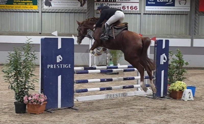 Pheline – talentiertes Springpferd mit viel Vermögen Pheline ist ein leistungsbereites Springpferd mit großem Potenzial und deutlicher Begeisterung für die Arbeit am Sprung. Sie zeigt viel Vermögen, Übersicht und eine gute Technik, wodurch sie sich klar als Sportpartnerin für den Springsport präsentiert . Unter dem Reiter ist Pheline aufmerksam, reaktionsschnell und stets motiviert. Sie denkt mit, geht mutig an die Sprünge heran und überzeugt durch ihre positive Einstellung sowie ihren Ehrgeiz. Besonders im Parcours zeigt sie ihre Stärke: kraftvoller Absprung, schnelle Reflexe und ein gutes Gefühl für Distanzen. Ideal für Reiter, die ein ambitioniertes Springpferd mit Perspektive suchen. Sie bringt die richtige Einstellung für Training und Turniersport mit . Im Umgang ist sie brav. Auch beim Reiten ist sie anständig. Ein motiviertes und ehrgeiziges Pferd mit Qualität für feinfühlige Reiter, die bereit sind sich etwas auf das Pferd einzustellen. In den richtigen Händen wird soe dicker in höheren Klassen ( M/ S ) reifen und viel Freude bereiten. Pheline hat zusätzliche gute Grundgangarten und geht gerne und zuverlässig ins Gelände. Pheline ist recht unverbraucht, da sie zunächst in der Zucht eingesetzt wurde und recht spät den Weg in den Sport gefunden hat. Hier war sie auf Anhieb mit einem Mädchen in einem A ** Springen platziert. Das macht definitiv Lust auf mehr. Sie verträgt sich übrigens gut mut anderen Pferden und lässt sich problemlos verladen. Ein Pferd , dass hier viele Fans hat. 9j St. , 1.68m Klinische Aku und Röntgen vorhanden. Video: https://youtu.be/FryHJfiijF0?si=HvXksuZ8J2-lEoi0 Noch mehr Fotos, Videos und kleine Einblicke in den Alltag unserer Pferde gibt’s auf Instagram: [maresi_lange]. Schauen Sie gern vorbei und lernen Sie unsere Vierbeiner schon vorab ein bisschen kennen. You can find more photos, videos and little insights into the everyday life of our horses on Instagram: [maresi_lange]. Feel free to take a look and get to know our horses a bit better in advance.“ Weitere Pferde auf meiner Homepage MaresiLange.de oder auf Anfrage. Die Beschreibung des Pferdes beruht auf subjektiven Eindrücken und Erfahrungen unsererseits und ist keine Beschaffenheitsvereinbarung und Zusicherung von Eigenschaften. Probereiten erfolgt auf eigene Gefahr. Verkauf erfolgt im Auftrag. Für das Vorstellen/ Probereiten des Pferdes erlauben wir uns eine Aufwandsentschädigung in Höhe von 30 Euro zu berechnen. Diese wird natürlich bei Kauf des Pferdes verrechnet.