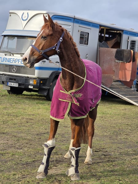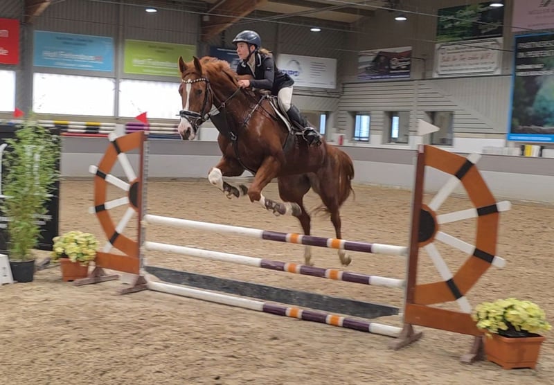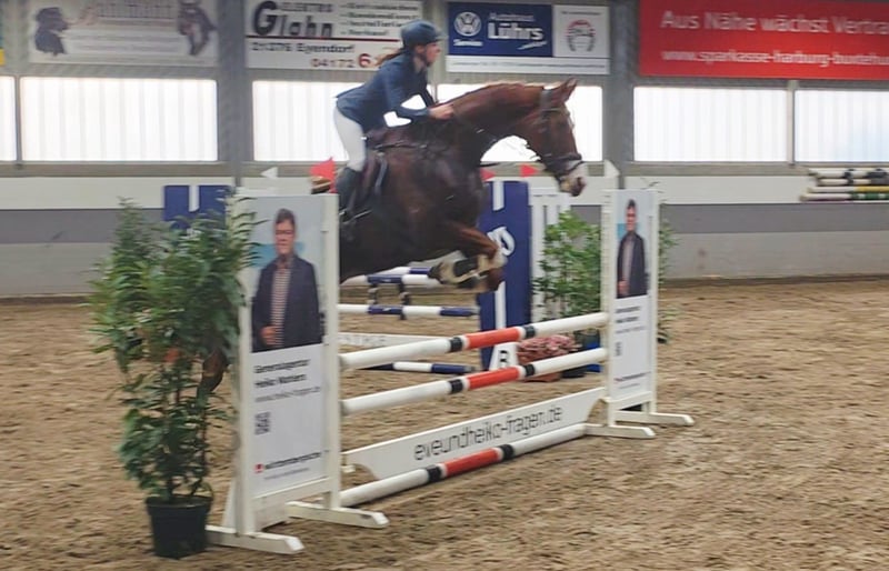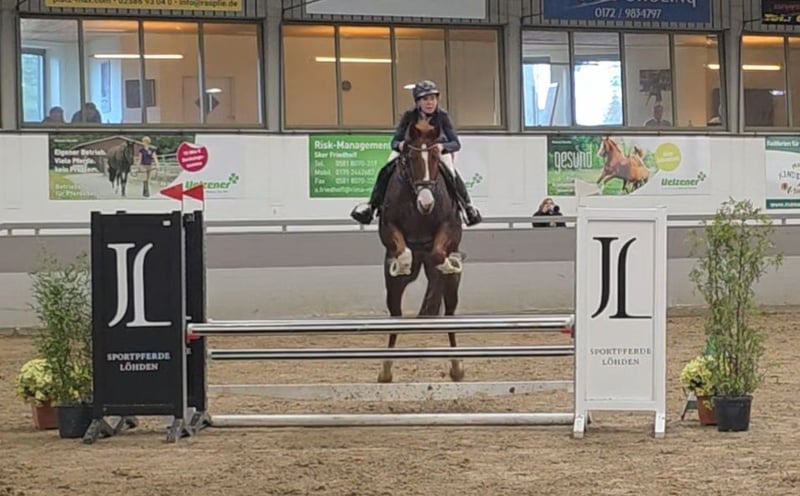 Pheline – Talented Show Jumping Horse with Great Potential Pheline is a motivated show jumper with significant potential and a clear enthusiasm for jumping. She demonstrates a lot of scope, awareness, and good technique, making her a promising partner for competitive jumping. Under saddle, Pheline is attentive, quick to respond, and consistently motivated. She thinks along with her rider, approaches jumps boldly, and impresses with her positive attitude and ambition. Her strength is especially evident in the course: powerful take-off, quick reflexes, and a good sense of distances. Ideal for riders seeking an ambitious jumping horse with prospects. She has the right attitude for training and competition. In handling, she is well-behaved. She is also well-mannered under saddle. A motivated and ambitious horse with quality, suitable for sensitive riders willing to adapt to the horse. With the right care, she will develop further in higher classes (M/ S) and bring a lot of joy. Pheline also has good basic gaits and enjoys and reliably goes out into the field. She is relatively unspoiled, having initially been used in breeding and only entering sport later. She was immediately placed in an A** jumping class with a young girl, which definitely sparks enthusiasm for more. She gets along well with other horses and loads easily. A horse that has many fans here. 9 years old, 16.1 hh Clinical examination and X-rays available. Video: https://youtu.be/FryHJfiijF0?si=HvXksuZ8J2-lEoi0 More photos, videos, and insights into our horses' daily lives can be found on Instagram: [maresi_lange]. Feel free to visit and get to know our four-legged friends a bit better in advance. You can find additional photos, videos, and small glimpses into our horses' everyday life on Instagram: [maresi_lange]. Please visit and familiarize yourself with our horses beforehand. Further horses are available on my website MaresiLange.de or upon request. The description of the horse is based on subjective impressions and our experiences and does not constitute a guarantee of properties or qualities. Trial riding is at your own risk. The sale is carried out on behalf of the owner. For the presentation or trial riding of the horse, we reserve the right to charge a fee of 30 euros, which will be deducted from the purchase price if the horse is sold.