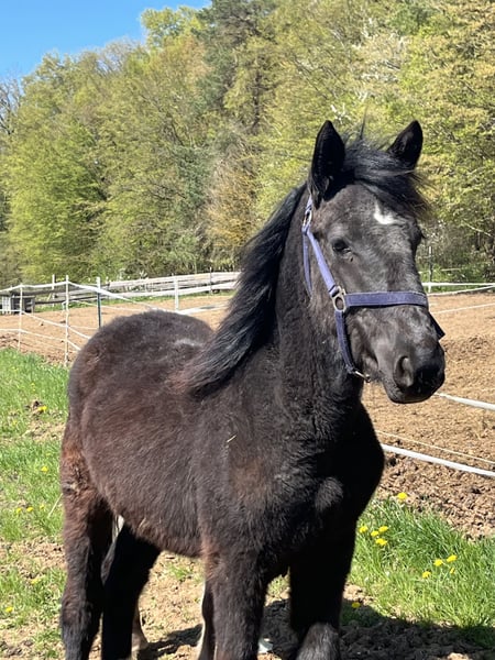 Er kennt das Fohlen ABC. Kennt den Umgang mit Kindern. Bodenarbeit, Hufe geben, aufhalftern, spazieren gehen…. Kennt verschiedene Tiere, Schafe, Hühner und Hunde. Fahrzeuge wie Lader, Traktoren… Wir suchen einen guten Platz für unseren hübschen. Ein Transport wäre möglich.