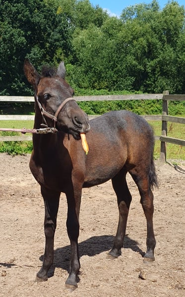 Djego ist ein 5 Monate alter Hengstabsetzer. Der kleine Mann ist ein Mix aus Friese (Vater) und Deutsches Reitpony × Lippizaner. Er kennt das Fohlen ABC und würde sich über gleichaltrige Artgenossen freuen. Er hat jetzt schon ein Stockmass über 1 25 und wird Endmass geschätzt um die 1 55. Ein Umzug ins neue Zuhause könnte auch organisiert werden.