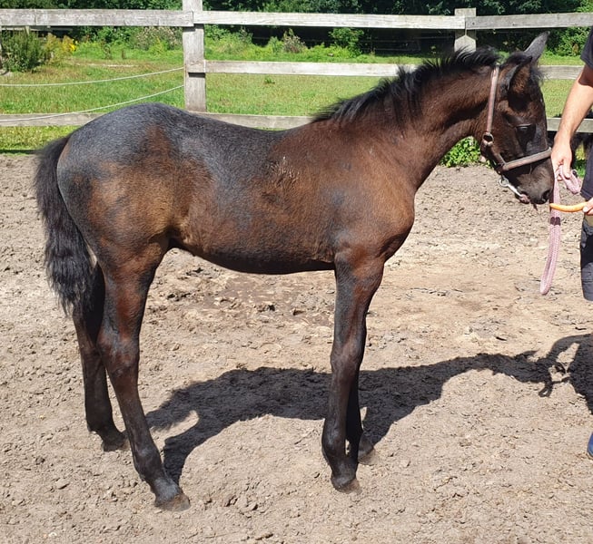 Djego is een 5 maanden oude hengstveulen. De kleine vent is een mix van een Fries (vader) en een Deutsches Reitpony × Lippizaner. Hij is bekend met de basis van de veulens en zou graag spelen met leeftijdsgenootjes. Hij heeft nu al een stokmaat van meer dan 1,25 m en wordt geschat op een eindmaat van ongeveer 1,55 m. Een verhuizing naar een nieuw thuis kan ook geregeld worden.