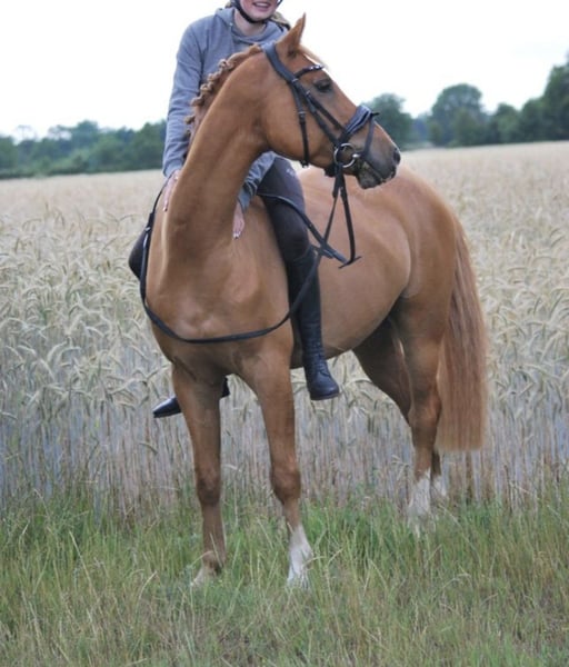 Onze pony met een lichte voskleurige coat zoekt een nieuw, passend thuis. Hij is 11 jaar oud en overtuigt niet alleen door zijn nobele uitstraling, maar ook door zijn bijzonder mensgerichte karakter. Aswan is een echt karakterpony met een stokmaat van 1,46 m – dapper en altijd eerlijk. In de omgang is Aswan een echt juweeltje. Onder het zadel is hij altijd gemotiveerd – fijn te rijden met een aangename go. Hij heeft al eerste wedstrijdervaring opgedaan en toont zich hier zeer kalm en zelfverzekerd. Hij springt altijd en geeft een goed gevoel. Hij heeft iemand nodig die consequent, rustig en ervaren is. Voor gevoelige ruiters met tact en structuur is hij een echt pareltje! Echter, niet geschikt voor beginners. Tijdens het longeren reageert hij goed op stemcommando’s en toont zich altijd gemotiveerd en betrouwbaar. Hij beschikt over een paardenpaspoort zonder afstamming, is regelmatig ontwormd, gevaccineerd en bij de tandarts geweest. Momenteel staat Aswan in een open stal – hij kent ook boxenstallen. Het is voor mij belangrijk dat hij veel beweging, sociaal contact (alleen hengstenhengsten) en afwisseling krijgt. Hij loopt barhuf (regelmatig, elke 7 weken bij de hoefsmid) met zeer goede hoefkwaliteit. Aswan wordt uitsluitend in goede handen verkocht.