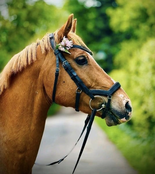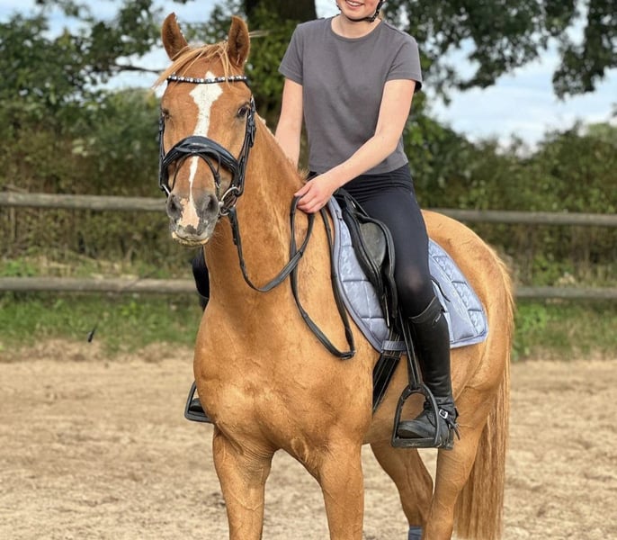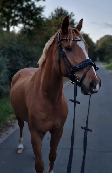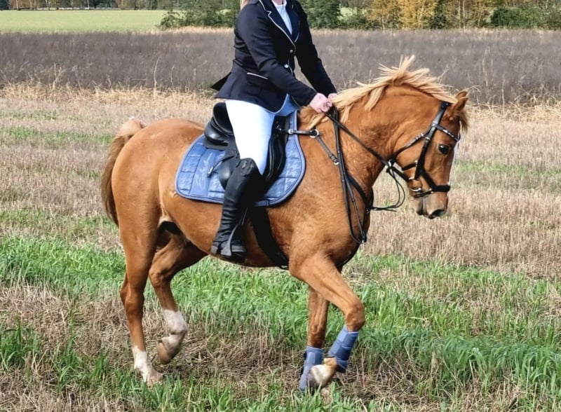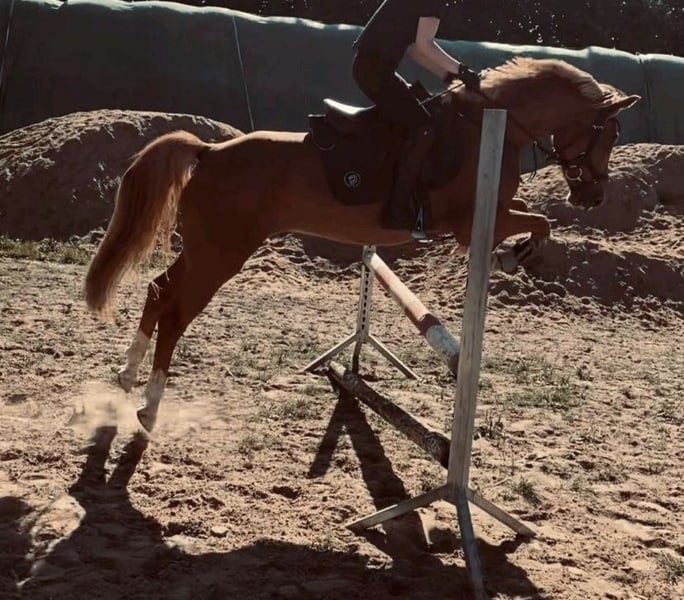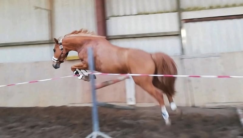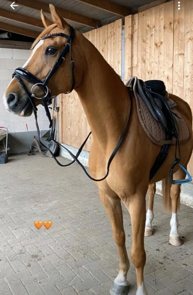 Our pony, a light chestnut-colored pony with a bright coat, is looking for a new, suitable home. He is 11 years old and impresses not only with his noble appearance but also with his particularly friendly and human-oriented nature. Aswan is a true character pony at 1.46 meters tall – brave and always honest. In handling, Aswan is a real treasure. Under saddle, he is always motivated – sensitive to ride, with a pleasant go. He has already gained some experience in competitions and remains very calm in this setting. He always jumps and gives a good feeling. He needs someone who is consistent, calm, and experienced. For empathetic riders with a gentle touch and structure, he is a real gem! However, he is not suitable for beginners. Lunging, he responds well to voice commands and is always motivated and reliable. He has a passport without pedigree, has been regularly dewormed, vaccinated, and presented to the dentist. Currently, Aswan is kept in an open stable system but is also familiar with box stall housing. It is important to me that he receives plenty of movement, social contact (only gelding herds), and variety. He is barefoot (regularly trimmed every 7 weeks) with very good hoof quality. Aswan is sold exclusively to responsible and experienced owners.