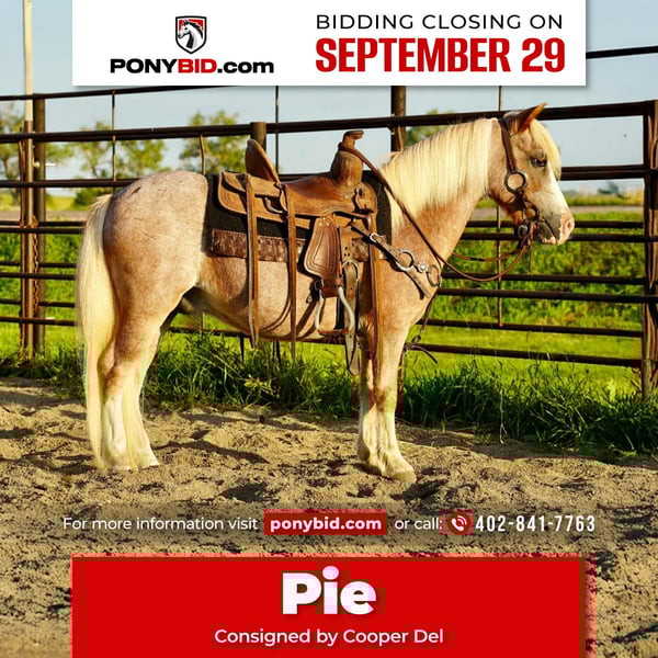 🐴 𝒕𝒉𝒆 𝐅𝐀𝐋𝐋 ℙ𝕆ℕ𝕐 𝑺𝒑𝒆𝒄𝒕𝒂𝒄𝒖𝒍𝒂𝒓🐴 Happening now thru MONDAY | SEPTEMBER 29th - Available EXCLUSIVELY on Ponybid's website! For more details and to register visit: www.Ponybid.com CONSIGNOR CONTACT: Cooper Del 402-841-7763 LOCATION: Corsica, SD BREED: Pony REGISTERED: No COLOR: Red roan HEIGHT: 34 inches AGE: 10 GENDER: Gelding Pie is a super cute 34 inch 10 year old red roan pony gelding. Pie has been used for trail riding riding through the pastures checking cows, He is safe and gentle and rides the very best independently and is good to be Pony off big horses or use for lead line. He has also been drove in the past a very nice solid, all-around Pony that anybody would enjoy to have their barn. He is an easy keeper with no bad habits. He is good on pasture or in stall, a very nice levelheaded, easy Pony to handle and ride. He rides bareback can throw two kids on him and doesn’t bother him. He is not spooky in a very nice Pony that you know your kids will enjoy.