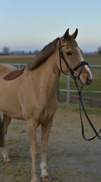 ** Kinderlehrpony Stip** 🌟 **Entdecken Sie Stip – Ihr zukünftiger Partner im Reitsport!** 🌟 Wir freuen uns, Ihnen Stip vorzustellen, ein charmantes Kinderlehrpony, geboren im Jahr 2011. Stip ist nicht nur ein zuverlässiger Begleiter, sondern auch eine absolute Lebensversicherung in allen Situationen. **Warum Stip?** - **Wunderschöne Gangarten:** Stip verfügt über drei weiche und leicht sitzbare Grundgangarten, die gerade für Kinder ideal sind. - **Vielseitig einsetzbar:** Egal ob im Gelände, in der Halle oder auf dem Platz – Stip macht überall eine gute Figur. Außerdem kann er kleine Sprünge meistern, was ihn zu einem perfekten Partner für alle kleinen Reiter macht. - **Überaus liebenswürdig:** Mit einem sanften Charakter und keinerlei bösen Absichten ist Stip das ideale Pony für Kinder. Er ist sowohl für Einzelkinder als auch für Reitschulen bestens geeignet. **Besonderes Angebot:** Bei sofortiger Mitnahme erhalten Sie **5% Rabatt** auf den Verkaufspreis! **Testmöglichkeit:** Überzeugen Sie sich selbst! Wir bieten Ihnen die Möglichkeit, Stip eine Woche lang bei uns zu testen. Diese Probewoche kann von erfahrenen Trainern begleitet werden, und Sie können Unterricht mit dem Testreiten kombinieren. Bitte beachten Sie, dass hierfür eine Probegebühr anfällt, die nicht vom Kaufpreis abgezogen wird. **Probereiten:** Sie möchten Stip kennenlernen? Gerne können Sie ihn bei uns anschauen. Die Kosten für das Vorreiten oder Vorführen betragen **30 € pro Person**. Lassen Sie sich diese Gelegenheit nicht entgehen! Stip wartet auf Sie, um viele glückliche Momente im Sattel zu erleben. Kommen Sie vorbei und lernen Sie unser wunderbares Pony kennen! 🐴✨