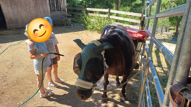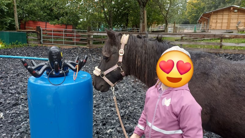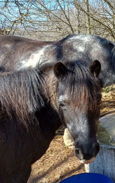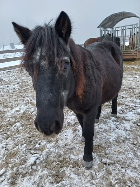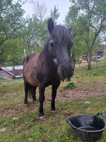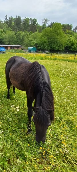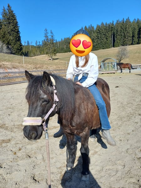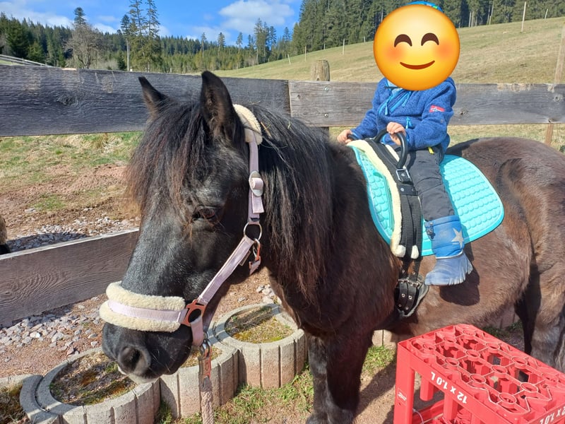 Mein süsser Dino braucht leider ein neues Zuhause. Er wird von meinen Stuten nicht akzeptiert, daher soll er in ein neues Zuhause wo er zur Ruhe kommen kann und neue Spielkameraden hat. Er ist gut verträglich und liebt es mit anderen Wallachen zu spielen, er kennt es auch in einer gemischten Herde zu stehen und hat damit keine Probleme. Er steht im Offenstall, kennt es aber auch über Nacht in der Box zu stehen. Er mag Kinder und will gerne betüddelt werden. Auf dem Reitplatz ist er eher etwas bockig, Spiele mit Kindern macht er dort gerne, nur reiten auf dem Platz ist nicht so seins, Bodenarbeit mag er auch nicht so / man müsste mehr mit ihm üben, leider fehlt mir dafür die Zeit. Im Gelände ist er bei mir als Handpferd mit gegangen was gut geklappt hat auch mit Kindern drauf. Spaziergänge mit Kind auf seinem Rücken geht auch gut. Alleine vom Stall weg ist für ihn nach den ersten 500m auch kein Problem. Er hat 24/7 Heu und Weide im Sommer hatte er nur 3 bis 4 Stunden/ Tag. Er sollte eher abnehmen und ist bei mir über den Winter leider etwas zu pummelig geworden. Bei Interesse sehr gerne direkt über Handy 0173-3062534 melden, da ich meine Mails nicht immer gleich anschaue. Platz vor Preis! Es tut mir sehr weh ihn hergeben zu müssen, aber für ihn ist es besser so, da er einfach nur noch von meinen Stuten geärgert wird, das hat der kleine Mann nicht verdient, er ist wirklich ein ganz lieber Kerl, der natürlich auch seinen Ponydickschädel hat, aber trotzdem nie Böse wird!
