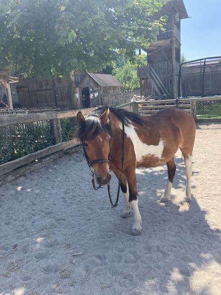 Sam is a super sweet but not entirely easy gelding. He is currently at the Abenteuerhof of the Schiefer family. Due to severe osteoarthritis in the carpal joint, he unfortunately has to be sold as a companion pony. Perhaps he could improve with the right medication. €700 self-collection.