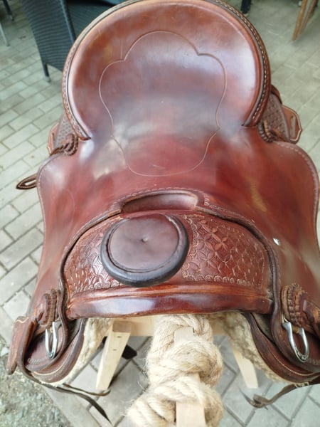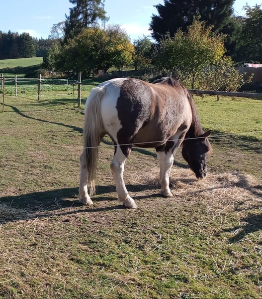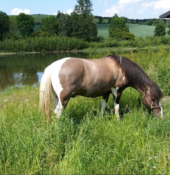 Booker ist ein kleiner, kräftiger 16 jähriger Wallach. Er ist ein Dülmener Wildpferd Mix. Stockmaß ca. 142 cm Freizeitgeritten im Westernsattel mit Sidepull, gebisslos Barfußgänger Offenstallhaltung - keine Boxenhaltung gewöhnt. Er wurde im Gelände geritten und war bei vielen Wanderritten dabei. Booker braucht einen erfahrenen, treuen Partner der sich viel mit ihm beschäftigt. kein Verkauf an Händler, Anfänger oder für Kinder. Booker ist sehr kurz, kompakt und hat einen geraden Rücken. Deshalb mussten wir einen Sattel für ihn Fertigen lassen. Dieser handgefertigte, schicke Sattel wird mit Booker verkauft. Booker kann nach Vereinbarung angeschaut oder Probe geritten werden. KEIN NOTVERKAUF