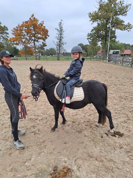 Flor sucht ein neues Zuhause 🐴 Flor ist ein liebenswerter junger Pony, der bereit für ein neues Zuhause ist. Er ist zugaloppiert, äußerst arbeitswillig und lernt schnell. • Name: Flor • Alter: 3 Jahre • Geschlecht: Wallach • Stockmaß: ca. 1,20 m (wächst noch, entsprechend seines Alters) • Farbe: Schwarz mit einer weißen Blesse Flor verfügt über drei schöne Gangarten und springt auch gerne. Außerdem ist er: • Beim Putzen brav, auch bei kleinen Kindern • Sehr leicht zu hufeisen • Vollverkehrstauglich • Brav beim Ausritt und im Wald • Fast überall unerschrocken Gesundheit & Pflege: • Regelmäßig entwurmt • Impfungen auf dem neuesten Stand • Alle 3 Monate beim Hufschmied Unterbringung: • Momentan steht er 24/7 auf der Weide mit Offenstall • Kann auch problemlos in der Box gehalten werden Flor ist ein ehrliches, braves Pony mit angenehmem Charakter und viel Potenzial für die Zukunft. 📩 Für weitere Informationen, Videos oder Fragen können Sie gerne eine Nachricht schicken. Ich antworte so schnell wie möglich.