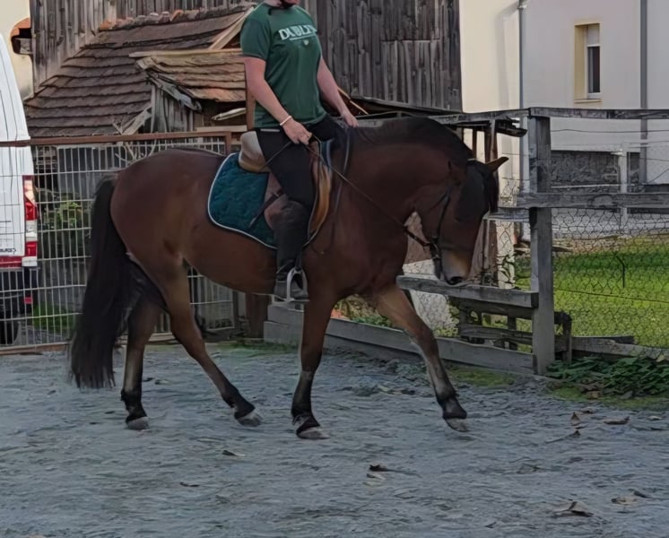 Verkaufe bezaubernden Wallach – ideal für Freizeit und Hobby! Dieser charmante Braune Wallach war im Sept.2025, 3 Jahre alt und hat aktuell ein Stockmaß von ca.140 cm. Er deckt auch größere Reiter gut ab. Der liebevolle Wallach überzeugt durch sein angenehmes Wesen und seine Bereitschaft, Neues zu lernen. Er ist gesund, gepflegt und freut sich auf eine neue Familie, die Spaß an gemeinsamen Ausritten und Freizeitgestaltung hat. Er wurde erst vor kurzem angeritten, zeigt sich jedoch sehr lernbereit und unerschrocken, bis jetzt kein buckeln oder steigen. Alle 3 GGA geritten. Geht auch brav in der Kutsche. Verkehrssicher. Zurzeit vorne beschlagen. Geeignet für jemand der sich sein Pony selbst weiter ausbilden möchte. Bei Interesse oder für weitere Informationen stehe ich gerne zur Verfügung!