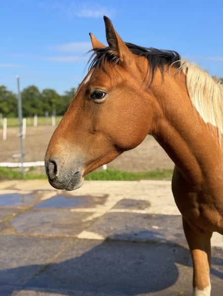 Schweren Herzens suchen wir für unseren jungen Scheck-Wallach, der bei uns geboren wurde, ein liebevolles Zuhause, in dem er in Ruhe ankommen und sich weiter entwickeln darf. Er ist aktuell ca. 140 cm groß und wird im April 3 Jahre alt also noch ein echtes Jungpferd, das die Welt neugierig entdeckt. Altersentsprechend ist er noch roh, bringt aber eine freundliche, offene Art mit und begegnet Menschen interessiert und lieb. Er kennt das Putzen, wird alle 8 Wochen vom Schmied bearbeitet und hat bereits erste Erfahrungen: • Spaziergänge kennt er schon, diese müssen jedoch noch weiter gefestigt werden • Longieren durfte er ebenfalls bereits kennenlernen Er lebt im Offenstall und fühlt sich in dieser Haltungsform wohl. Natürlich ist er geimpft und gechipt und besitzt Equidenpass sowie Eigentumsurkunde. Wir wünschen uns für ihn Menschen mit Geduld, Zeit und Herz, die Freude daran haben, einen jungen Wallach behutsam weiter auszubilden und ihm Sicherheit zu geben. Platz vor Preis uns ist wichtig, dass er in die richtigen Hände kommt.