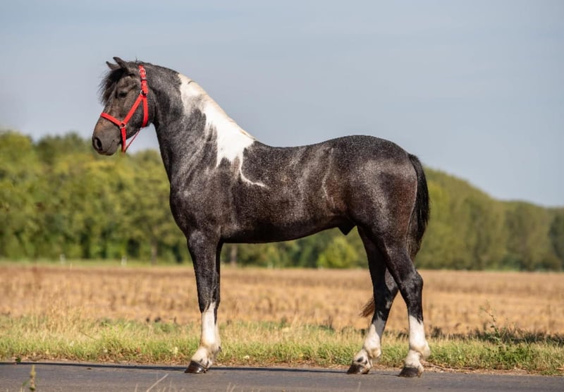 Zum Verkauf steht hier ein traumhaft schöner Wallach in auffallender Scheck-Färbung! Primero ist 3 Jahre alt und derzeit 147 cm groß. Er wurde jetzt schonend angeritten und ist ganz bemüht bei der Arbeit. Läuft auch super an der Longe und ist ein- und zweispännig gefahren. Nebenbei hat er sehr gute Bewegungen und ist ein super nettes, elegantes Sportpony. Er ist ein ganz ganz liebes Pferd - verschmust und geduldig, nicht hektisch oder mit heißem Temperament ausgestattet. Mit mehr Ausbildung wird er sicherlich ein top Schulpferd - oder für den ambitionierten Freizeitreiter ein top Sportpony. Gerne kann er jederzeit besichtigt werden. Weitere Informationen, Fotos und Videos gerne auf Anfrage direkt in WhatsApp.