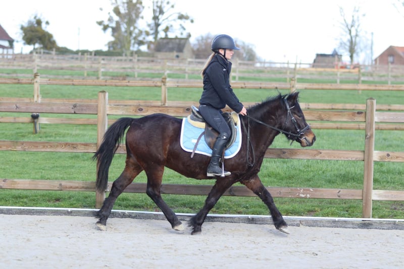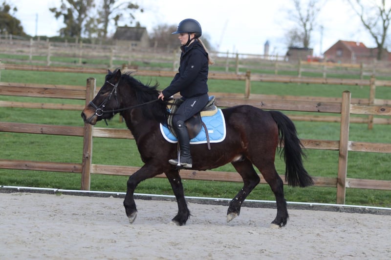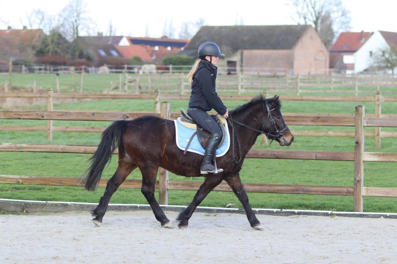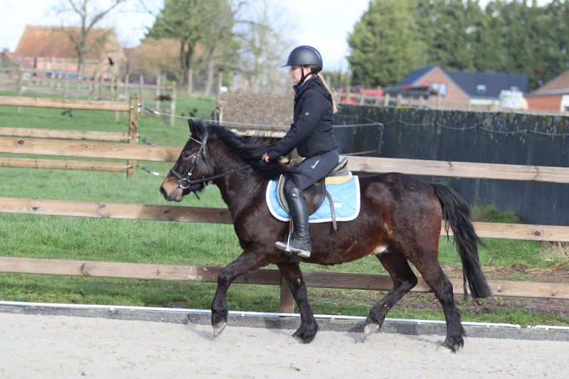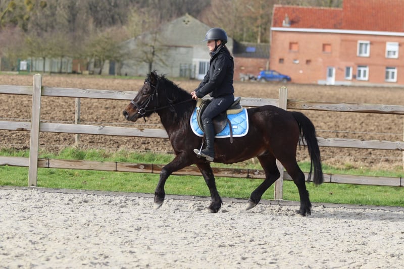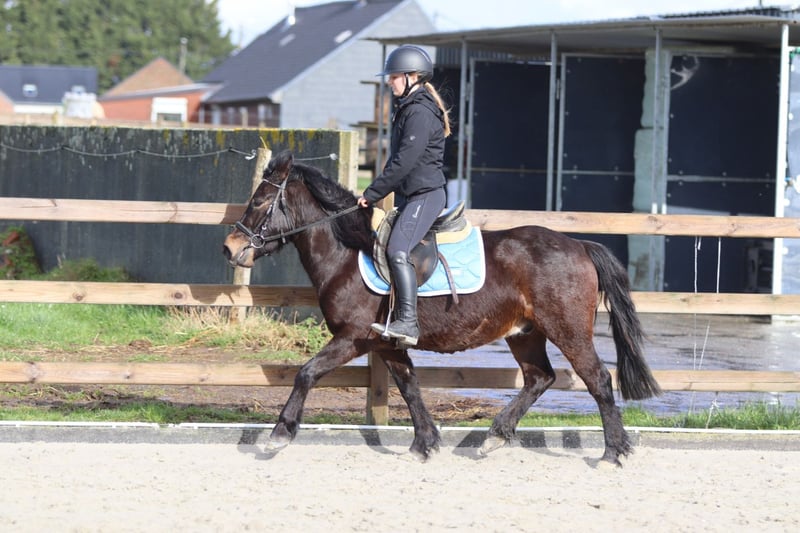 Benny is a 4-year-old cob measuring approximately 1.33 m. A charming young pony with a sweet temperament and a pleasant attitude. He is well-behaved and calm in handling. He is easy to manage in daily work and stands nicely still when tacked up. Under saddle, he is well-mannered and easy to ride, demonstrating willingness to work. He is also suitable for outdoor rides and continues to learn every day. More information? +32 475 68 22 43 For videos: please ask for our website