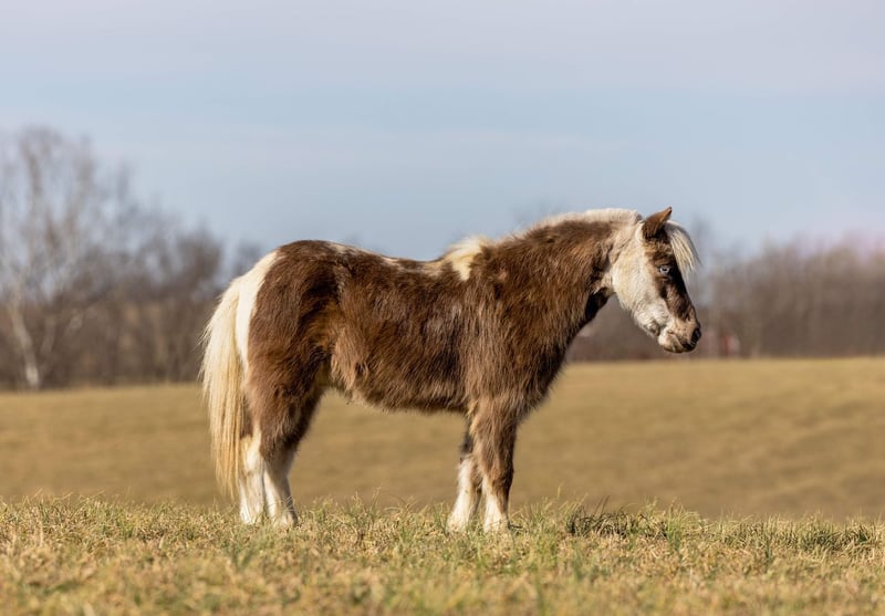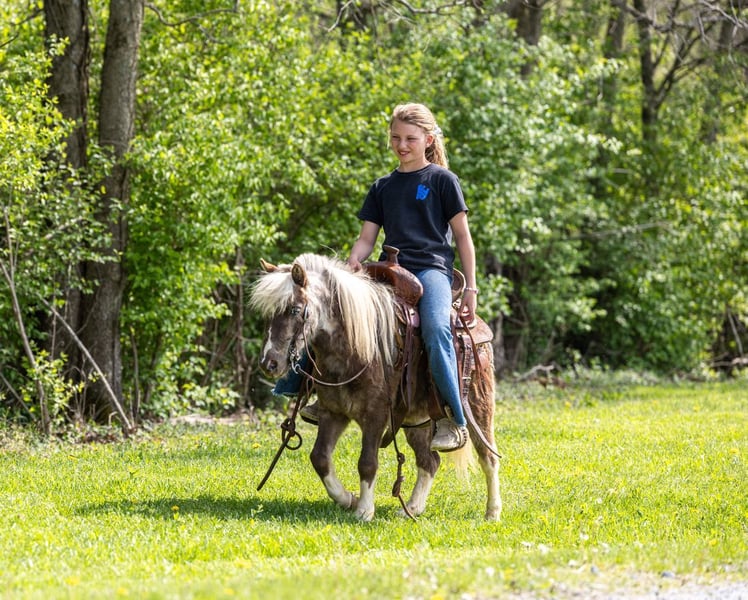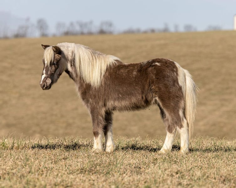 Scout, poney castré de 4 ans, mesurant 35 pouces, gris argenté et blanc