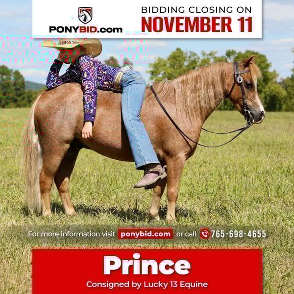 𝓽𝓱𝓮 𝐑𝐈𝐃𝐄𝐑'𝐒 𝓒𝓱𝓸𝓲𝓬𝓮 🐴 𝐏𝐎𝐍𝐘 𝐄𝐃𝐈𝐓𝐈𝐎𝐍 🐴 Happening now thru TUESDAY | NOVEMBER 11th - Available EXCLUSIVELY on Ponybid's website! For more details and to register visit: www.Ponybid.com CONSIGNOR CONTACT: Lucky 13 Equine 765-698-4655 LOCATION: Mount Vernon, Kentucky BREED: Pony REGISTERED: No COLOR: Red Roan HEIGHT: 40" AGE: 5 GENDER: Gelding Prince is a 5-year-old red roan gelding pony that’s just as handy as he is handsome! This little guy has truly seen and done a little bit of everything. He’s been used to push cows, go on trail rides, and even pull the family around for a Sunday afternoon cart ride. He’s the kind you can enjoy no matter what you’re doing. Our little girl has spent countless hours with him riding, brushing, showing, and just hanging out. She’s hauled him to local horse shows all summer long and he’s always the same sweet, dependable pony wherever he goes. Prince loves attention and is always up for what ever she asks him to do. On the trail, he’s an absolute dream. He’ll cross water, step right over logs, or pick up the pace and hop over them if you ask. He’s sure-footed, confident, and willing whether he’s riding out alone or with a group. He stands tied, and is patient for brushing, bathing, and picking up his feet. If you’re looking for that special pony the whole family can enjoy one that’s gentle, fun, and a total sweetheart Prince really checks all the boxes!