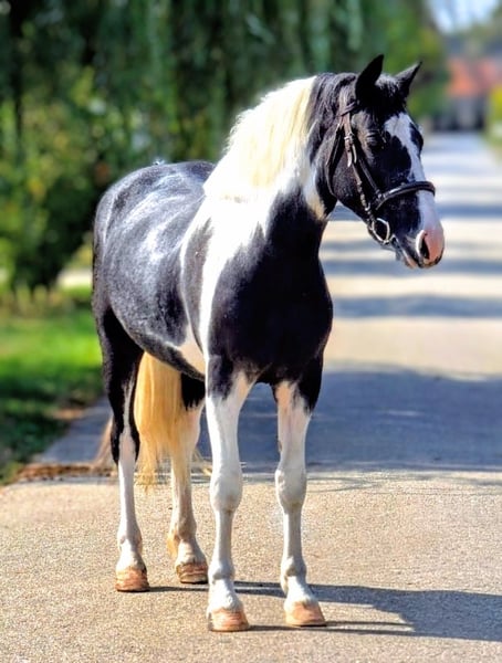 Matyi is a 4-year-old, 138 cm tall, very friendly and well-balanced young gelding with a unique, stunning coat color. He is looking for his forever home. Considering his age, he is already quite well-backed and ridden. He is calm and cooperative, making him an ideal choice for beginners, children, and leisure riders. Main features and advantages: Handling: Calm, balanced temperament, easy to manage. Learns quickly and is motivated; working with him is always a pleasure. Riding: Rideable in all three gaits, reliable both indoors and outdoors. Well-trained for his age and responds sensitively to aids. Social behavior: Friendly with other horses, easily integrates into any herd. Loves human companionship and regular interaction. Transport: Calm during loading, easily steps onto horse transport, suitable for longer journeys. Health: Equipped with a chip and horse passport, up-to-date veterinary examination, and necessary vaccinations. Matyi is an ideal leisure and family partner who enjoys being close to humans, learns quickly, and is a very reliable companion for his age. If you are interested in this beautiful pony, please contact me with your phone number so I can get in touch with you as soon as possible.
