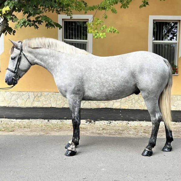 🩶💠 Silver 💠🩶 Wysokość około 147 cm Wiek około 5 lat Silver to wyjątkowa kucykowa klacz. Absolutnie pewny w każdej sytuacji. Niezawodne i spokojne w terenie, także dla początkujących. 💠 Charakter i temperament Silver jest przyjazny, czujny i spokojny, doskonale adaptuje się do nowych otoczeń i sytuacji. Potrafi bezpiecznie współpracować z dziećmi i mniej doświadczonymi jeźdźcami, ale jest także interesującym i niezawodnym partnerem dla bardziej doświadczonych. Silver jest kooperatywny, cierpliwy i zawsze zachowuje równowagę – zarówno podczas jazdy, jak i w stajni czy podczas transportu. 💠 Doświadczenie jeździeckie Silver zapewnia w każdym aspekcie niezawodne i komfortowe wrażenia z jazdy. Zarówno na placu, jak i w terenie, jest stabilny i reaguje wrażliwie na pomoc. Jego spokojny, ale czujny charakter daje jeźdźcowi pełne poczucie bezpieczeństwa. Idealnie sprawdzi się także w ośrodku jeździeckim, ponieważ nie ma problemu z różnymi jeźdźcami. 💠 Chętny do nauki i dobrze wyszkolony Silver jest łatwy w treningu i szybko adaptuje się do nowych zadań. Praca z nim pozwala szybko odkryć, jak satysfakcjonujące może być współdziałanie z inteligentnym i czujnym koniem. Nie ma złych nawyków, a dzięki spokojnemu usposobieniu prace codzienne, jazda i pielęgnacja są zawsze bezproblemowe i bezpieczne. 💠 Zdrowie i obsługa Silver jest w pełni zdrowy, regularnie szczepiony i odrobaczany. Czyszczenie kopyt i prace z podkuwaniem nie sprawiają mu trudności, a także bez problemu daje się załadować do przyczepy. Dzięki łagodnemu usposobieniu jest niezawodnym partnerem w każdej sytuacji – zarówno podczas rekreacyjnej jazdy, jak i dłuższych wycieczek. Chętnie wyślemy filmy – prosimy o kontakt +4917640177894