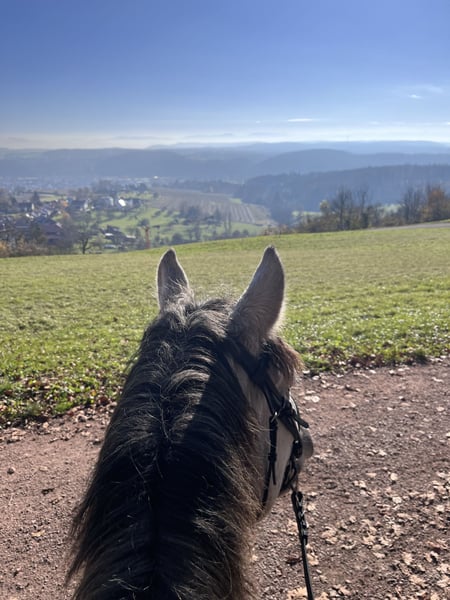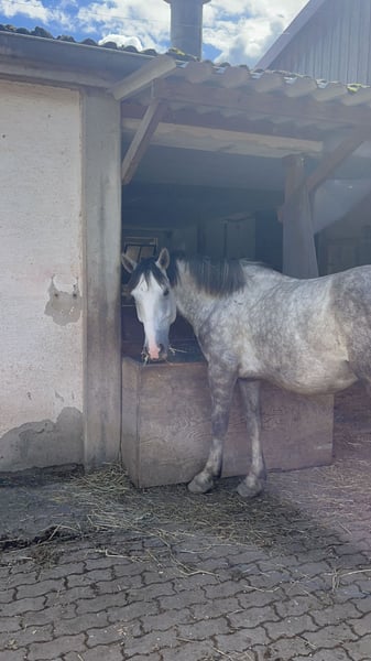 Dino ist 2021 geboren und seit einem Jahr unter dem Sattel. Wir haben uns gemeinsam viel erarbeitet, denn noch vor sechs Monaten war vieles nicht möglich, was ein Pferd eigentlich können sollte – dazu gehörten unter anderem Putzen, Hufe geben, Longieren und routiniertes Reiten. Er ist ein relativ dominanter Wallach, der den persönlichen Raum noch nicht vollständig akzeptiert und eine geringe Frustrationstoleranz hat. Er testet häufig Grenzen und braucht jemanden, der sehr klar ist. Jemanden mit Erfahrung im Jungpferdebereich, der ihn als seine Aufgabe sieht und ihm den Rahmen gibt, den er braucht. Am besten wäre ein reiner Wallach-Offenstall mit einem guten Herdenchef oder einer großen Herde. Wenn er seiner festen Bezugsperson vertraut, ist er ein wirklich toller Trainingspartner: super motiviert, lauffreudig und unerschrocken. Er liebt Ausritte, geht in allen GGA und ist sehr gut über die Stimme regulierbar. Außerdem ist er sehr menschenbezogen, lernwillig und macht sich in der Freiarbeit sehr toll. Zudem hat er ein gutes Grundfundament und ist stabil& funktionsfähig gebaut. Platz vor Preis Keine Anfänger Keine Händler Kein Schulbetrieb