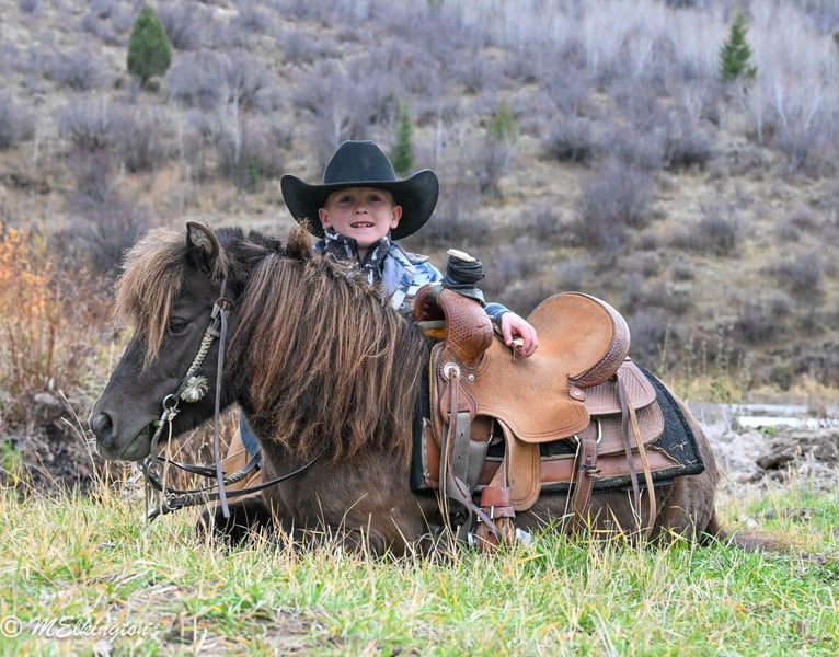 🎁 𝐈𝐍 𝐓𝐈𝐌𝐄 𝐅𝐎𝐑 𝑪𝒉𝒓𝒊𝒔𝒕𝒎𝒂𝒔 🎁 Happening now thru TUESDAY | DECEMBER 9th - Available EXCLUSIVELY on Ponybid's website! For more details and to register visit: www.Ponybid.com CONSIGNOR CONTACT: 4 Spades Ranch Chace Elkington 208-705-6540 LOCATION: Rigby, Idaho BREED: pony REGISTERED: No COLOR: Brown HEIGHT: 39" AGE: 5 GENDER: Gelding Shaggy is a 39” chocolate gelding and only 5 years old, truly every kid’s dream pony. With smooth gaits, a kind heart, and the calmest little brain, he’s as dependable as they come. Sun-kissed to a lighter chocolate in summer and jet-black when stalled, he’s just as striking as he is safe. This gelding is absolutely broke to ride—kids can hop on bareback or throw a saddle on and take off with confidence. He’s been a barn favorite and has done trail rides, play days, barrels, poles, ropes the dummy, pulls a wagon and all the fun kid stuff. Always steady and always willing, Shaggy is the kind of pony that builds confidence and makes every ride enjoyable. Shaggy has also pushed cattle, been shot off of, and handles anything new with total calm. He walks right over the teeter-totter, through the water and loves every obstacle. His lope is the sweetest, smoothest little short lope easy for kids to sit and easy to enjoy. Adding to his charm, Shaggy is trick-trained—he lays down, sits up like a dog, and even sits on a bean bag. If you’re looking for a flashy, fun, trustworthy, family-friendly pony, Shaggy is the one.