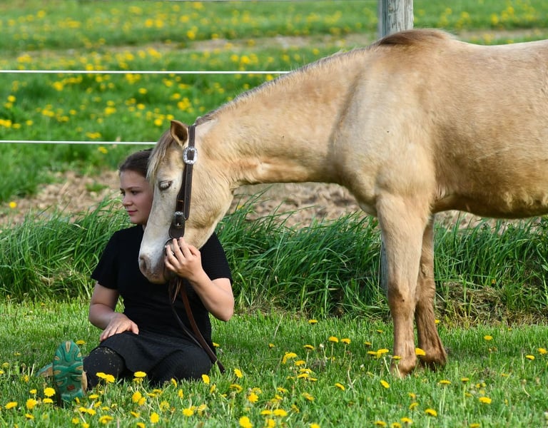 Whiskey, poney champagne de 6 ans, mâle, mesurant 1,17 m (46 pouces)