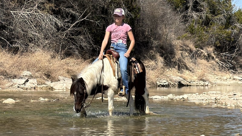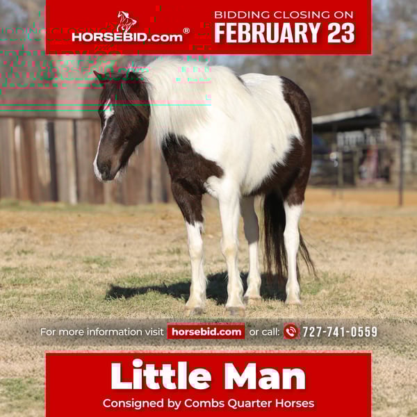 💎 𝐓𝐇𝐄 𝓓𝓲𝓪𝓶𝓸𝓷𝓭 𝐒𝐇𝐎𝐖𝐂𝐀𝐒𝐄 💎 Happening now thru MONDAY | FEBRUARY 23rd - Available EXCLUSIVELY on HorseBid's website! For more details and to register visit: www.Horsebid.com CONSIGNOR CONTACT: Combs Quarter Horses 727-741-0559 LOCATION: Cleburne, TX BREED: Pony REGISTERED: No REGISTERED NAME: Little Man COLOR: Black & White HEIGHT: 12 AGE: 6 GENDER: Gelding If you’ve got a handy kiddo that wants a REAL broke pony to ride.. Little Man is your guy! Little Man is a 6yr old 48 in black and white pony gelding. As handy as a shirt pocket and as cute as a button! Too broke for the timid kiddos! WESTERN EXPERIENCE: Little Man has been ridden like a ranch horse. He’s been pasture roped off as well as backed in the box and used on the heel side. He will rope the sled or live cows! If you’re brave enough to track it.. he’s brave enough to go to it! He will put you in the right spot and stop hard! Little Man has a great one hand neck rein, he catches both leads easily and lopes really nice circles! When you’re done and just wanting to stand around and chit chat.. he will stand there all day long on a loose rein! Little Man is also hands down the best trail pony we’ve ever had! He will go over, under and through anything you point him at! He’s like a little Billy goat the way he will hook in and go up even the steepest hills! He loves the water as well! Absolutely zero hesitation even in the fast flowing rivers! The kiddos will love racing with their friends also! This pony can book it when asked! Then just walk off quietly on a loose rein! Want to use him for the playdays? He will do that too! He’s got a decent little start on the barrels and poles as well! ENGLISH EXPERIENCE: My girls have started Little Man in the English world. He takes right to the saddle and trots around so cute! He will also go right over the jumps with zero hesitation with the cutest little knees! He’s a great hunter, jumper or even cross country prospect! DISPOSITION: Little Man is very sweet and gentle. He’s got a kind disposition and really aims to please. He really enjoys scratches and grooming. He can be a bit shy to catch so we do give treats at catching time. UPKEEP: Little Man eats free choice alfalfa. No supplements or maintenance required to keep him sound. Really great feet with no past founder. He’s is in a full set of shoes as a personal preference. Would be happy to pull back shoes before hauling. TURNOUT: Little Man can go out with horses big and small. He’s quiet in a herd setting or single turnout. GROUND MANNERS: Little Man is very respectful of your personal space. He stays back and respects your space and feet! No problem at all for the kiddos to lead! Kids can also load and unload him. He’s extremely easy! Also stands tied to the trailer, single tied and crosstied. BAD HABITS/ VICES: Little Man has no real bad habits or vices other than being difficult to catch at times. No buck, rear, bolt, kick or bite. TACK: Little Man will ride English or western. He’s been ridden in a snaffle and a short shank snaffle. BOARDING: Temporary boarding is available to arrange pick up. Absolutely no rush. Coggins and health certificate will be provided and in hand for the hauler. Please feel free to contact me for any further information at 727-741-0559. This is a Florida number that I’ve had for years.