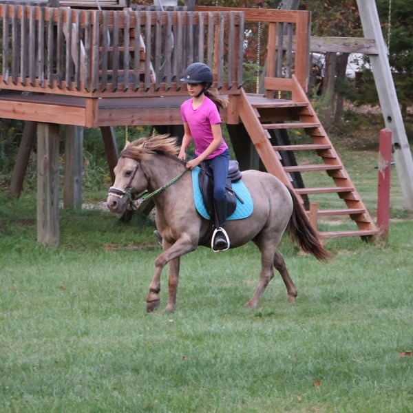 𝓽𝓱𝓮 𝐑𝐈𝐃𝐄𝐑'𝐒 𝓒𝓱𝓸𝓲𝓬𝓮 🐴 𝐏𝐎𝐍𝐘 𝐄𝐃𝐈𝐓𝐈𝐎𝐍 🐴 Happening now thru TUESDAY | NOVEMBER 11th - Available EXCLUSIVELY on Ponybid's website! For more details and to register visit: www.Ponybid.com CONSIGNOR CONTACT: Blackstone Stables 248-390-6831 LOCATION: Howell, MI BREED: Pony REGISTERED: No COLOR: Champagne HEIGHT: 12.1 AGE: 5 GENDER: Gelding Stop your scrolling! Here is the ultimate safe AND talented pony with show experience and trick training! I’m proud to introduce and offer Tony The Pony! He is the pony that kids dream of owning and that parents trust to keep their kiddos safe. Tony is a unique champagne color with a beautiful thick mane and tail. He is 5 years old and stands a stout 12.1hh. Tony is a pony anybody can ride! He walk trot and canters on a loose rein, steers with leg and seat, has flying lead changes, and has excellent breaks. You can ride him in a snaffle bit or no bit at all! Tony has been working in our lesson program teaching all types of riders including the first timers to the more advanced students that jump and show. Tony has attended several schooling shows! He performed well in the chaos and won a few blue ribbons! He most recently competed in a Halloween show and was a part of a costume parade, arguably the cutest minion at the show!! Tony also rides western! He trail rides like an old pro. Nothing phases him out in the woods. He’s seen it all from the hills, creeks, ponds, thick brush, logs, mud, and wildlife. Just when you think Tony couldn’t get any better well he is also trick trained! He knows how to sit and lay down on command. A tap on his left shoulder blade or on his left front pasture and he lays right down to get on or off. Tony has wonderful ground manners. He will ground tie, cross tie, or tie to a post and stand all day to be groomed. He also stands for other things like saddling, farrier, mounting/dismounting, bathing etc. He is also well broke to ride. Hook him up and head to town, a parade or take him sledding in a snowy day, he’s game to do it! He is a finished, safe, quiet, bombproof pony with absolutely no holes in his training! On top of that he has the talent and training to take your young rider to the top of his/her class. What more could you want in a kids pony?!?!? Come meet Tony and he’s sure to steal your heart!