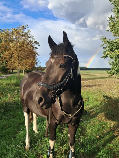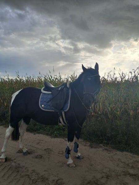 Sales advertisement: Pinto gelding for sale We are looking for a new home for our beautiful pinto gelding! Features: - Gender: Gelding - Year of birth: 2019 - Height: 150 cm - Suitability: Jumping, Dressage This talented gelding is not only a real eye-catcher but also has a lot of potential in jumping. He is well-mannered, well-trained, and has already gained some experience in the course. He is suitable for both experienced riders and ambitious beginners who enjoy working with a young horse. If you are interested or would like more information, we look forward to your message! Feel free to visit us to get to know our pinto gelding in person.
