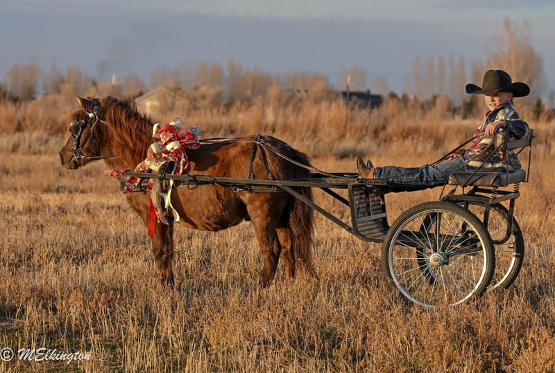 🎁 𝐈𝐍 𝐓𝐈𝐌𝐄 𝐅𝐎𝐑 𝑪𝒉𝒓𝒊𝒔𝒕𝒎𝒂𝒔 🎁 Happening now thru TUESDAY | DECEMBER 9th - Available EXCLUSIVELY on Ponybid's website! For more details and to register visit: www.Ponybid.com CONSIGNOR CONTACT: 4 Spades Ranch Chace Elkington 208-705-6540 LOCATION: Rigby, Idaho BREED: pony REGISTERED: No COLOR: Brown HEIGHT: 39" AGE: 5 GENDER: Gelding Shaggy is a 39” chocolate gelding and only 5 years old, truly every kid’s dream pony. With smooth gaits, a kind heart, and the calmest little brain, he’s as dependable as they come. Sun-kissed to a lighter chocolate in summer and jet-black when stalled, he’s just as striking as he is safe. This gelding is absolutely broke to ride—kids can hop on bareback or throw a saddle on and take off with confidence. He’s been a barn favorite and has done trail rides, play days, barrels, poles, ropes the dummy, pulls a wagon and all the fun kid stuff. Always steady and always willing, Shaggy is the kind of pony that builds confidence and makes every ride enjoyable. Shaggy has also pushed cattle, been shot off of, and handles anything new with total calm. He walks right over the teeter-totter, through the water and loves every obstacle. His lope is the sweetest, smoothest little short lope easy for kids to sit and easy to enjoy. Adding to his charm, Shaggy is trick-trained—he lays down, sits up like a dog, and even sits on a bean bag. If you’re looking for a flashy, fun, trustworthy, family-friendly pony, Shaggy is the one.