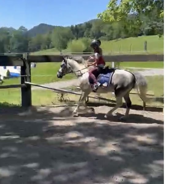 Robby ist ein zuckersüßes 2018 geborenes Grauchscheckpony. Der kleine Mann ist 130 cm groß und kräftig gebaut. Robby liebt das Putzen und verwöhnt werden. Er ist sowohl am Putzplatz als auch bei der Bodenarbeit vorbildlich brav. Beim reiten überrascht Robby mit seiner Motivation und seinem Mut. Besonders gefällt ich das Ausreiten, dabei liebt er das Wasser und besonders Spaß hat er beim Springen. Dieser kleine Wallach ist das perfekte Kinder- und Familienpferd! Auch als Therapiepferd können wir uns den Schecken gut vorstellen. Robby ist aktuell geimpft und entwurmt!# Weitere Infos und Videos gerne per WhatsApp oder telefonisch unter: 00436603632373 Standort: Pelmberg 15/ OÖ Besichtigung und Probereiten gerne nach Terminvereinbarung! Der Transport des Pferdes kann gerne übernommen werden