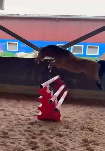 Poney gelding with a sporty build, well-ridden, excellent jumping skills, perfect for children!