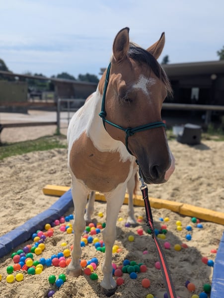 Ich verkaufe meinen hübschen und besonderen Endmaßpony - Wallach. Kalino braucht vom Boden aus eine durchsetzungsfähige Person, da er sonst immer Mal wieder testet (wenn man nicht selbstsicher ist). Ist sehr feinfühlig und versteht gut Körpersprache. In der großen Wallachherde kann er immer Mal wieder hengstiges / dominantes Verhalten zeigen. Kleinere Wallachherden gefallen ihm besser. Ranghoch. Beim reiten ist er sehr lieb und verzeiht Fehler. Er ist auch für nicht so starke Reiter geeignet und achtet sehr auf seinen Reiter (Ohr oft bei einem, bei Unsicherheit pariert er durch). Sehr schöne , weiche Gänge und testet beim reiten nicht. Selten schreckhaft. Im Umgang mit Kindern auch sehr lieb, einfühlsam und sehr geduldig. Natürlich sollte ein Erwachsener in der Nähe sein. Verladefromm, lieb beim Schmied / Hufpflege, Barhuf, entspannt beim Putzen, hat kein Problem mit Wasser, eher ein ruhiger Typ. Große AKU von 2024 vorhanden (inklusive Röntgenbilder von Beinen und Rücken)- absolut unauffällig, top fit! Bei weiteren Fragen gerne melden :)