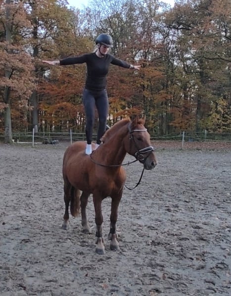 Timmy is een bijzonder sympathieke kleine ruin, een ruin met een vriendelijk uiterlijk die meteen de aandacht trekt. Vooral zijn grote, zachte ogen en zijn vriendelijke aard maken hem tot een echt hartendier. Hij is gemakkelijk te berijden en te hanteren door zowel kinderen als volwassenen. Dankzij zijn formaat is hij geschikt voor ruiters van verschillende lengtes, ook grotere ruiters. Timmy overtuigt met nette bewegingen, is zeer licht te rijden en gemakkelijk aan te sturen. Hij vormt een mooi plaatje onder de ruiter. Ook in springen doet Timmy al eerste ervaring op en heeft hij al twee keer succesvol deelgenomen aan een springles. Hierbij toont hij veel plezier en leergierigheid. Met verdere begeleiding is hij zeker ook geschikt voor kleinere wedstrijden. Ik denk dat hij goed in de smaak valt bij de jury’s. Vooral in het terrein gaat Timmy met veel betrouwbaarheid en plezier – onbevreesd, aangenaam en altijd ontspannen. Dankzij zijn geweldige karakter en zijn kalmte is hij ook uitstekend geschikt voor minder ervaren ruiters en zou hij bovendien een ideaal therapiepferd zijn. In de omgang is Timmy een ware schat: knuffelbaar, mensgericht en goed met andere paarden. Hij kent zowel boxen met paddock als een open stal en past zich probleemloos aan. Een paard dat door zijn uitstraling en zijn lieve aard meteen enthousiasmeert en een trouwe partner wordt voor het hele gezin. 7 jaar, hengst, 1,54 m Klinisch gezond, geen afwijkingen Voor nog meer foto’s, video’s en kleine inkijkjes in het dagelijks leven van onze paarden, neem een kijkje op Instagram: [maresi_lange]. Voel je vrij om alvast een kijkje te nemen en onze vierbenen wat beter te leren kennen. Je vindt meer foto’s, video’s en kleine inzichten in het dagelijks leven van onze paarden op Instagram: [maresi_lange]. Neem gerust een kijkje en leer onze paarden alvast wat beter kennen. De beschrijving van het paard is gebaseerd op subjectieve indrukken en ervaringen van onze zijde en vormt geen garantie of bevestiging van eigenschappen. Proefritten gebeuren op eigen risico. Verkoop gebeurt in opdracht. Voor het bekijken of proefrijden van het paard vragen wij een vergoeding van 30 euro. Deze wordt uiteraard verrekend bij aankoop van het paard.