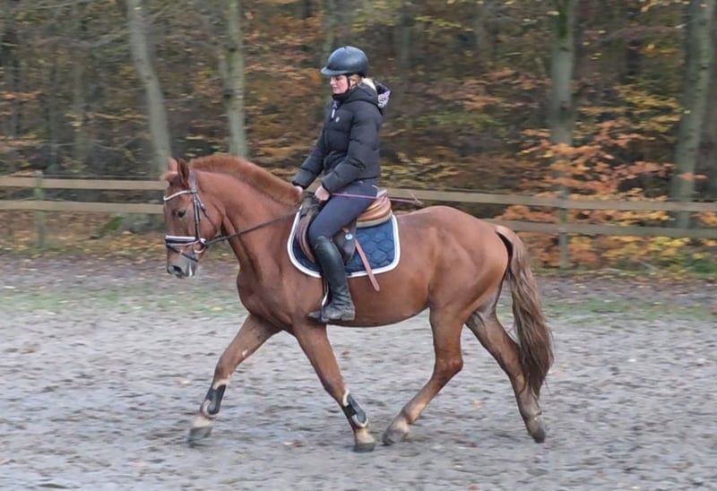 Timmy ist ein ausgesprochen sympathischer Kleinpferd-Wallach, der mit seinem hübschen Äußeren sofort ins Auge fällt. Besonders seine großen, sanften Augen und sein freundliches Wesen machen ihn zu einem echten Herzenspferd. Er lässt sich sowohl von Kindern als auch von Erwachsenen problemlos reiten und händeln. Mit seinem passenden Format deckt er Reiter unterschiedlichster Größe gut ab. Selbst größere Reiter. Timmy überzeugt mit ordentlichen Bewegungen, ist sehr leichtrittig und leicht an den Zügel zu stellen. Er macht ein tolles Bild unter dem Reiter. Auch im Springen sammelt Timmy bereits erste Erfahrungen und hat schon zweimal erfolgreich an einer Springstunde teilgenommen. Hierbei beweist er viel Freude und Lernbereitschaft. Bei weiterer Förderung sicher auch für kleinere Turniere geeignet. Ich denke er kommt bei den Richtern gut an. Besonders im Gelände geht Timmy mit viel Zuverlässigkeit und Freude – unerschrocken, angenehm und immer entspannt. Dank seines tollen Charakters und seiner Gelassenheit eignet er sich auch hervorragend für weniger erfahrene Reiter und wäre zudem ein ideales Therapiepferd. Im täglichen Umgang ist Timmy ein wahrer Schatz: verschmust, menschenbezogen und verträglich mit anderen Pferden. Er kennt Boxenhaltung mit Paddock genauso wie Offenstall und passt sich unkompliziert an. Ein Pferd, das durch seine Ausstrahlung und seine liebenswerte Art sofort begeistert und zum treuen Partner für die ganze Familie wird. 7j W. , 1.54 m Klinische Aku vorhanden Noch mehr Fotos, Videos und kleine Einblicke in den Alltag unserer Pferde gibt’s auf Instagram: [maresi_lange]. Schauen Sie gern vorbei und lernen Sie unsere Vierbeiner schon vorab ein bisschen kennen. You can find more photos, videos and little insights into the everyday life of our horses on Instagram: [maresi_lange]. Feel free to take a look and get to know our horses a bit better in advance.“ Die Beschreibung des Pferdes beruht auf subjektiven Eindrücken und Erfahrungen unsererseits und ist keine Beschaffenheitsvereinbarung und Zusicherung von Eigenschaften. Probereiten erfolgt auf eigene Gefahr. Verkauf erfolgt im Auftrag. Für das Vorstellen/ Probereiten des Pferdes erlauben wir uns eine Aufwandsentschädigung in Höhe von 30 Euro zu berechnen. Diese wird natürlich bei Kauf des Pferdes verrechnet.